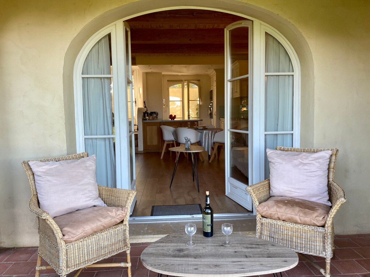 Bagnols en Forêt, uždaroje, tylioje studijoje su oro kondicionieriumi 25 m², (viloje 2019 m. - nepriklausomas įėjimas) visi patogumai, 2 žmonės - be vaiko ar kūdikio. Jame yra 1 svetainė su įrengta virtuvėle, svetainė su sofa-lova, televizorius, daiktų laikymo vieta. 1 miegamasis, 1 lova (160 x 200) ir dušo zona, spinta, atskiras tualetas. Yra automobilių stovėjimo aikštelė, baseinas (8x4), bendras su savininku, terasa su stalu, kėdės, planča, soliariumai, skėtis, dušas. Nerūkoma, be augintinių.