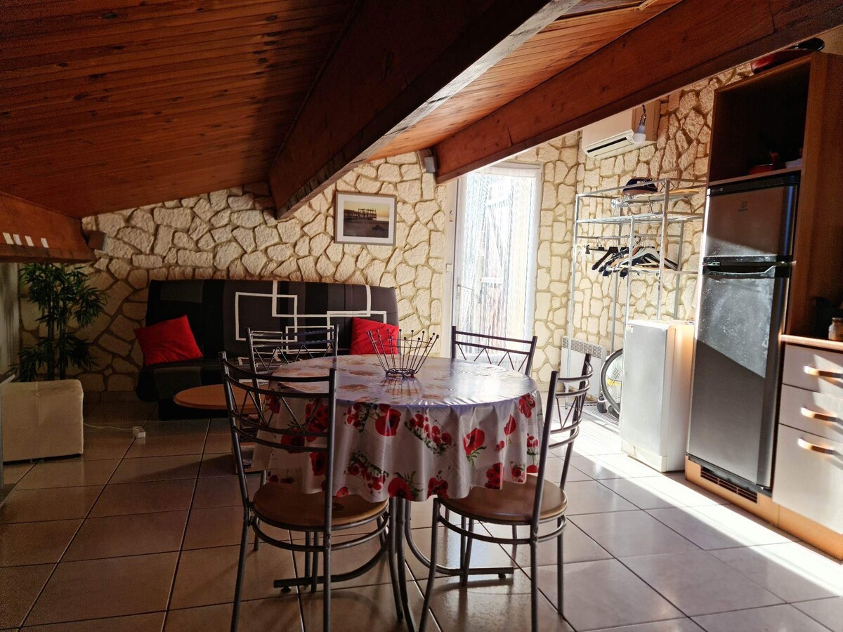 Paplūdimio namas dideliame gamtiniame Leucate kaime, šalia austrių trobelių. Įvertinta 3 žvaigždučių Išskirtinė vieta tiesiai ramiame ir šeimai tinkamame gamtiniame paplūdimyje. Atsidūręs į rytus, atsuktas į tekančią saulę, jis yra apsaugotas nuo vyraujančio vėjo - Tramontano. Didelė 25 kv. m terasa. Inst: Lescoquillagesvacances Parduotuvės ir restoranai gamtiniame kaime pėsčiomis.