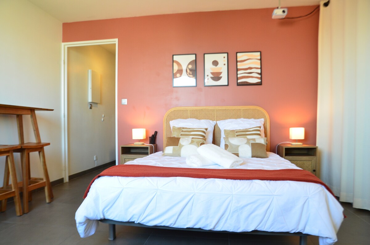 Studio tout confort à Décines, idéal pour déplacements professionnels, événements au Groupama Stadium LDLC Arena ou courts séjours proches de Lyon. Situé à 2 pas des tram T3 T7, 5 min en voiture ou 25 min à pied de la LDLC Arena et du Groupama Stadium. Une place de parking souterrain privative est incluse pour plus de commodité. Parfait pour les voyageurs en quête de praticité et de confort à proximité des attractions principales de la région.