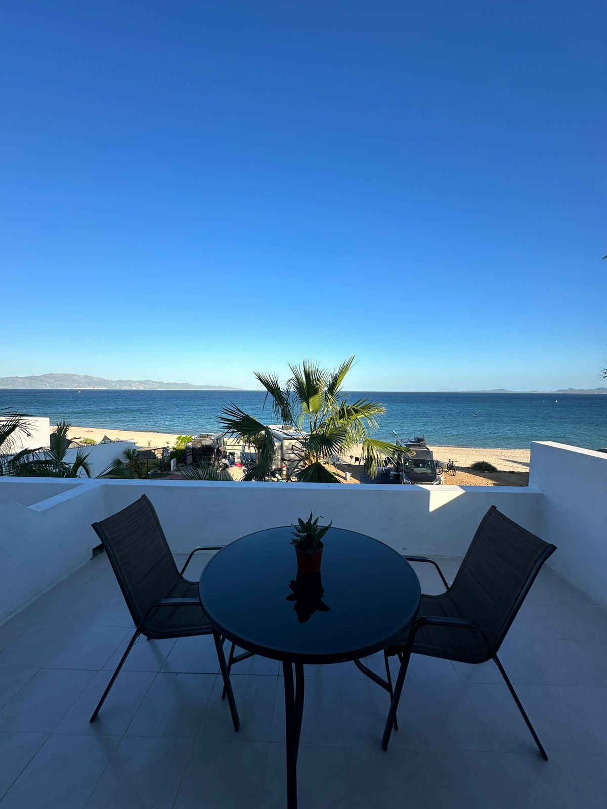 Wake up to front-row sunrise views over the Sea of Cortez— panoramic, unobstructed views of the bay, island and desert mountains. This eco-friendly second-floor retreat offers a cozy 2-bed, 1-bath layout with a fully equipped kitchen, breakfast bar, and a bright living room that opens to a furnished balcony—your private perch for morning coffee, ocean breezes, and stargazing. Just 7–10 minutes to beaches, kitesurf, sea safaris, cafés, hot springs, biking, and yoga. Enjoy fast Starlink WiFi.