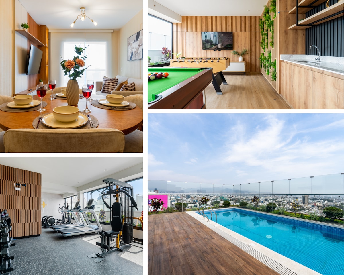 Gyvenkite Limoje iš 20 aukšto su nuostabiais vaizdais! 🛏️ KARALIŠKO DYDŽIO LOVA 📺 65col. televizorius 🛋️ Patogi sofa 🍳 Pilnai įrengta virtuvė 🏊 Baseinas, 🔥 kepsninė ir 🍸 poilsio baras (priklausomai nuo užimtumo) 🚗 Automobilių stovėjimo aikštelė už 8 USD už naktį (priklausomai nuo užimtumo) Bagažą 🧳 laikykite prieš atvykimą arba po išvykimo 📍 Puiki vieta tarp Miraflores, San Isidro ir Surquillo 🌟 Turėdamas 4,96 įvertinimą ir Superšeimininko statusą, siūlau jums patogią ir saugią viešnagę. 📅 Užsisakykite dabar ir mėgaukitės Lima iš viršaus, su stiliumi ir komfortu!