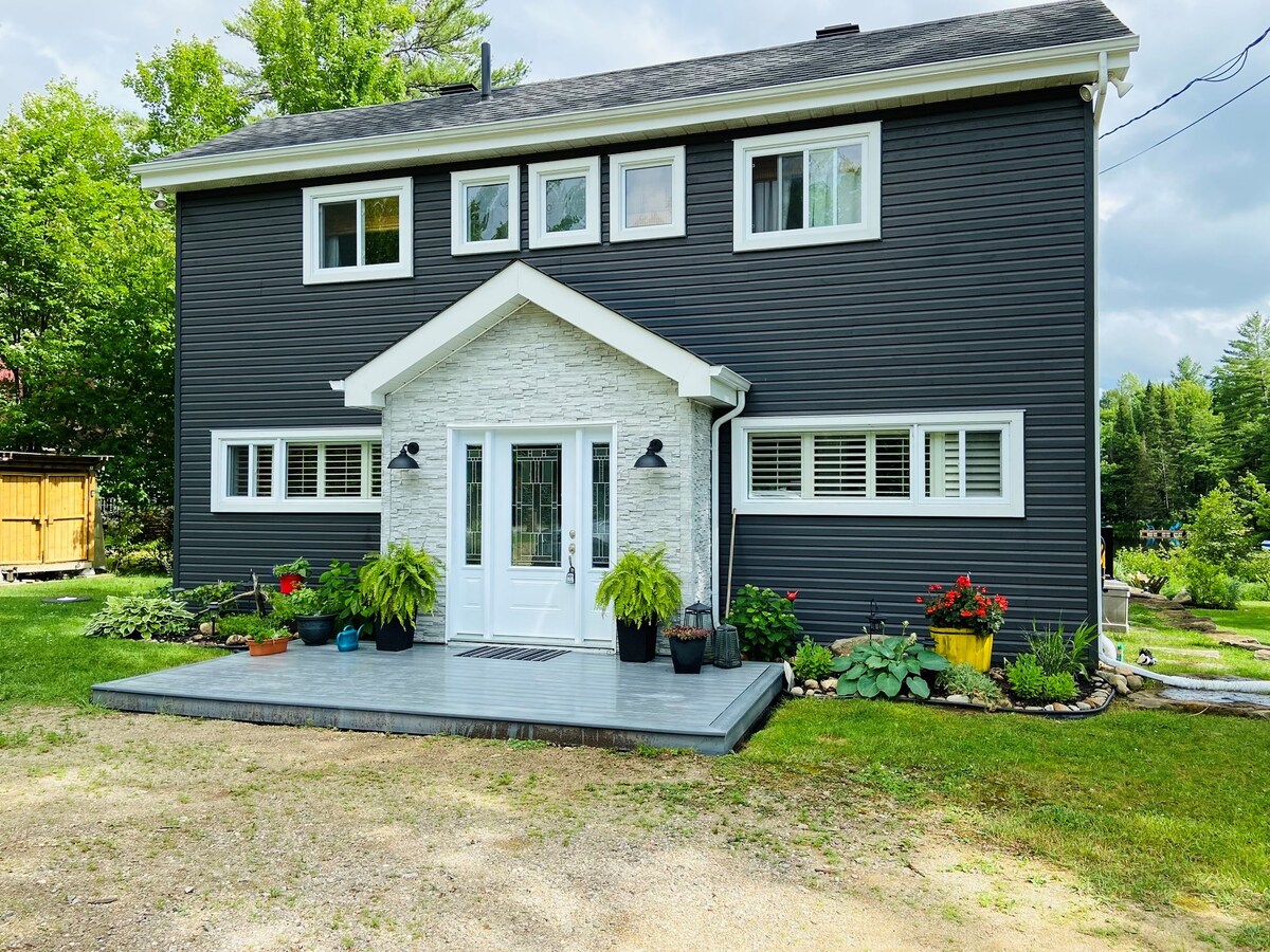 Sveiki atvykę į mūsų namelį ant kranto, esantį ramioje Wakefield vietovėje, 2 akrų sklype. Dviejų aukštų 1 800 sf kotedžas buvo kruopščiai suprojektuotas taip, kad būtų integruotas į gamtą su dideliais langais nuo grindų iki lubų. Atsipalaiduokite ir atsipalaiduokite gamtoje. Daug veiklos: plaukite iš doko, kanojų/baidarių, žuvies, dviračių, golfo, slidinėjimo, tyrinėkite Gatineau parką, Nordik Spa ir kt. (CITQ#304057. Mes mokame visus pardavimo ir pajamų mokesčius provincijos / Fed vyriausybėms)