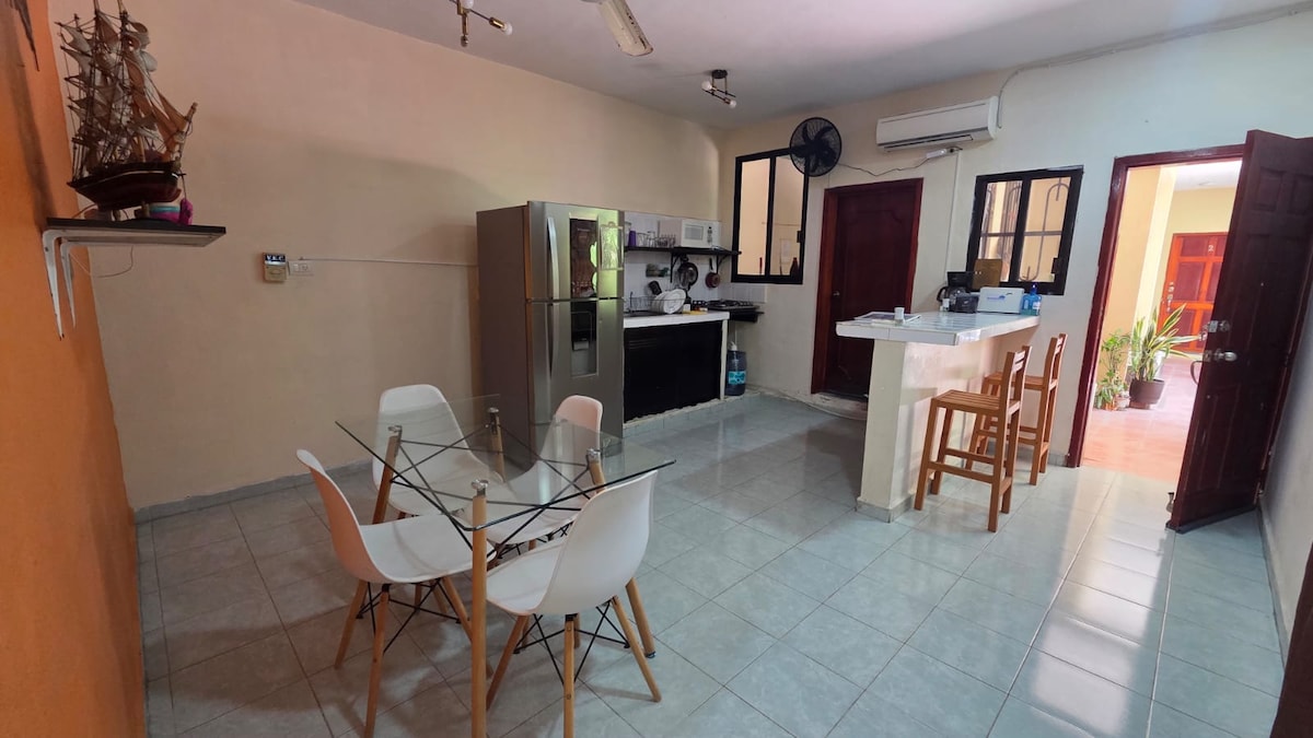 Įrengtas butas, puikiai tinkantis studentams, mažoms šeimoms ir keliautojams. Vos už 1,2 km nuo centro būsite netoli restoranų, viešbučių, muziejų, turgų ir Cd. del Carmen pėsčiųjų tako. Mėgaukitės modernia ir jaukia erdve, puikiai tinkančia atsipalaiduoti po miesto tyrinėjimo. Siūlome išskirtines paslaugas, kad jūsų viešnagė būtų patogi ir įsimintina - darbo, studijų ar pramogų tikslais. Laukiame jūsų