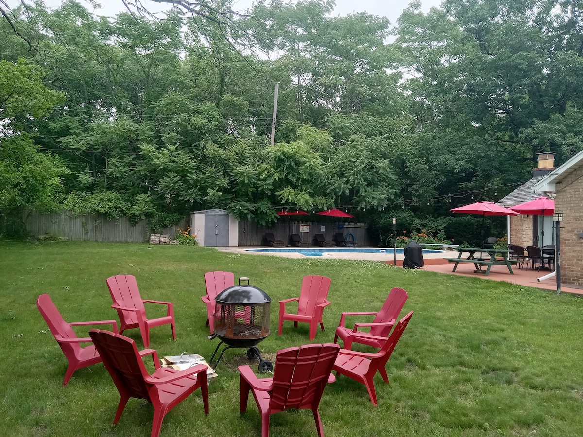 Mičigano ežeras - paplūdimys su šildomu baseinu - sūkurinė vonia - Indianos kopų nacionalinis parkas - Privatus rūsio svečių apartamentai - 2 miegamieji/2 vonios kambariai - gražiai dekoruoti Šiame svečių apartamentuose yra viskas, ko reikia patogiai ir atpalaiduojančiai viešnagei. Mėgaukitės 3 asmenų sūkurine vonia, puikiai tinkančia atsipalaiduoti po nuotykių dienos. Vasaros mėnesiais mėgaukitės šildomu antžeminiu baseinu. Žygiai pėsčiomis, paplūdimiai ir dar daugiau - iki Čikagos - mažiau nei valandos kelio automobiliu. Šildomas baseinas veikia nuo gegužės vidurio iki spalio vidurio.
