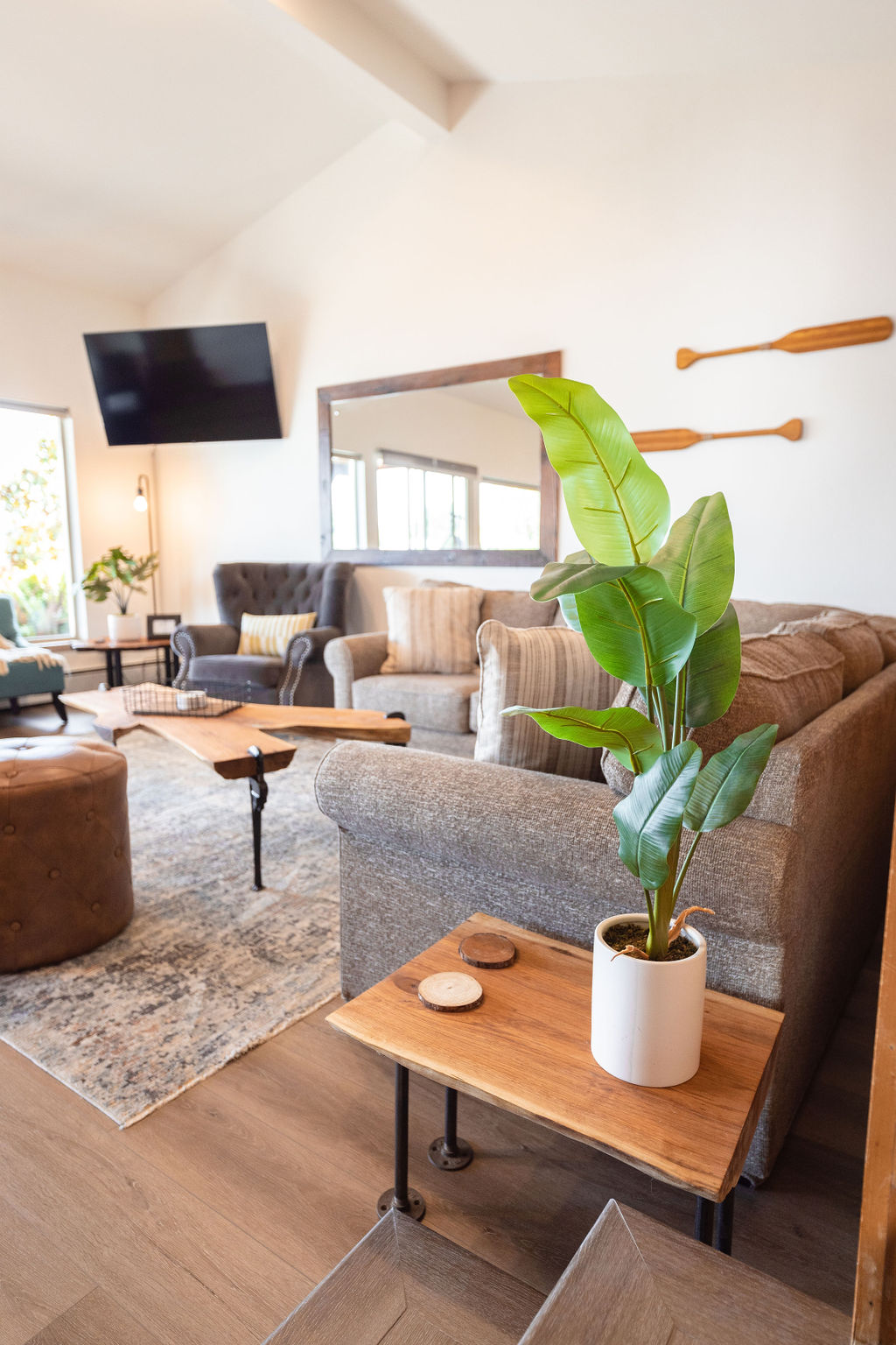 Iš kotedžo prie upės atsiveria puikus vaizdas į Snoqualmie upę. Išlipkite ant medinės terasos su savo mėgstamiausiu gėrimu ir klausykitės upelio, kai jis teka žemyn, kad prisijungtų prie upės. Giliai įkvėpkite ir visiškai atsipalaiduokite sėdėdami prie ugnies ketaus priešgaisriniame dubenyje terasoje, iš kurios atsiveria gražus vaizdas į upę.