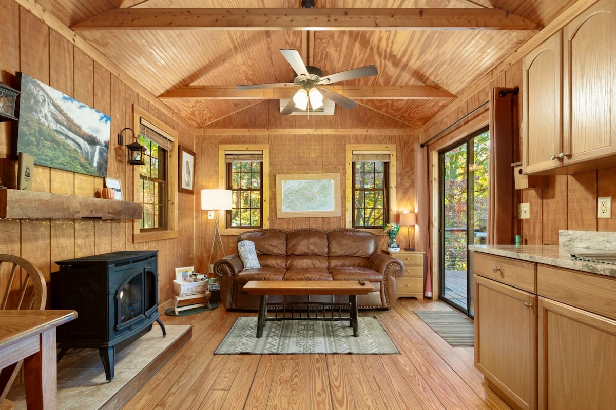 Atsipalaiduokite ramioje kalnų vietoje River Symphony, Chimney Rock, NC. Pasimėgaukite privačia sūkurine vonia, jaukiai įsitaisykite prie laužavietės ir mėgaukitės gamta iš terasos klausydamiesi raminančių netoliese tekančios Broad River upės garsų. Puikiai tinka atsijungti, vėl prisijungti ir sulėtinti tempą po žygio, krioklių ar netoliese esančių miestų tyrinėjimo dienos. Puikiai tinka poroms, draugams ir šunims. • Sūkurinė vonia • Laužavietę • Tinka šunims • Greitąjį Wi-Fi • Netoli Chimney Rock valstijos parko ir Lure ežero