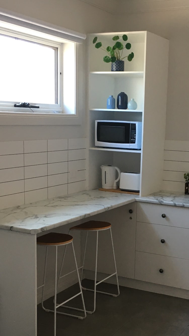 The Little Shack is a modern bungalow with a spacious double gated yard area, less than 1km from the beach. It is situated behind the main residence, 5 blocks from the main street of Warrnambool and a short drive to the river mouth. Around the corner are the Fletcher Jones gardens, a fish + chip shop, a laundromat and a cafe ~Wilba + Co. Most pets are welcome to stay with pre-approval. The bed mattress is a Melbourne made firm queen sized. Parking is on the street or the nature strip.