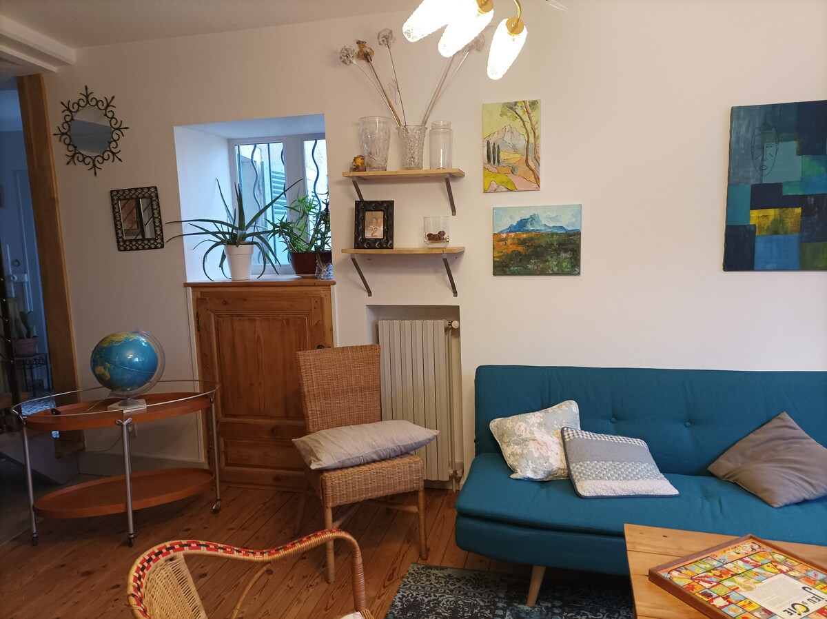 10 crus du Beaujolais širdyje, ant Place de Romaneche Thorins, nedidelis jaukus ir gerai įrengtas butas tiek mes, tiek nuotolinio darbo savaitei. Maža terasa buto gale. Tylus ir labai gerai sujungtas kaimas (A6, TGV, traukinių stotis...). Visos parduotuvės. Touroparc ir Le Hameau du Vin kaime galėsite atsipalaiduoti ir maloniai praleisti laiką.