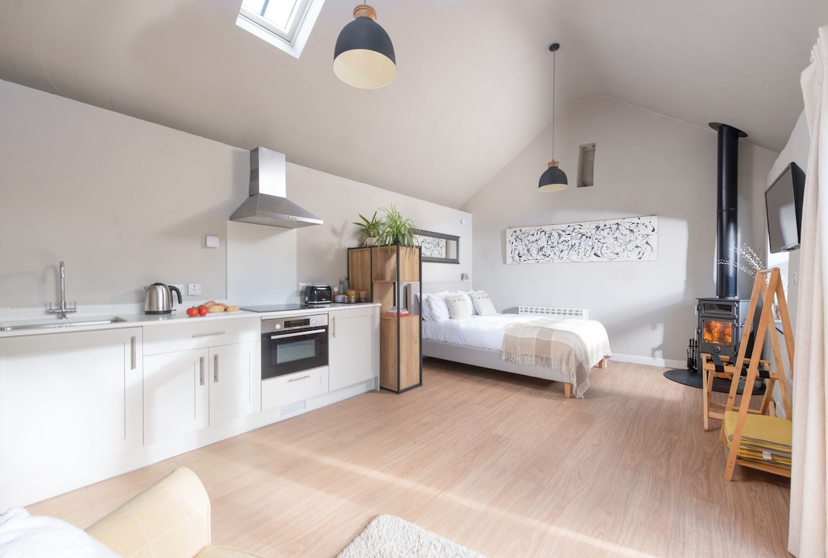 Senas garinis namas (iš pradžių pastatytas senoviniam gariniam automobiliui) naujai pertvarkytas į nuostabų, atskirtą, architektūros suprojektuotą 1 miegamojo nuosavybę, įrengtą didelio Viktorijos laikų namo subrendusiame sode. Granitinis pastatas yra šviesus ir erdvus, su dideliais į pietus esančiais langais, aukštomis lubomis, malkomis kūrenama krosnele, karališko dydžio lova, puikiu dušu ir grindiniu šildymu. Esame už 2 minučių kelio pėsčiomis nuo kaimo parduotuvių ir baro. Patalpose yra šviesolaidinis kabelis, todėl labai greitas Wi-Fi!