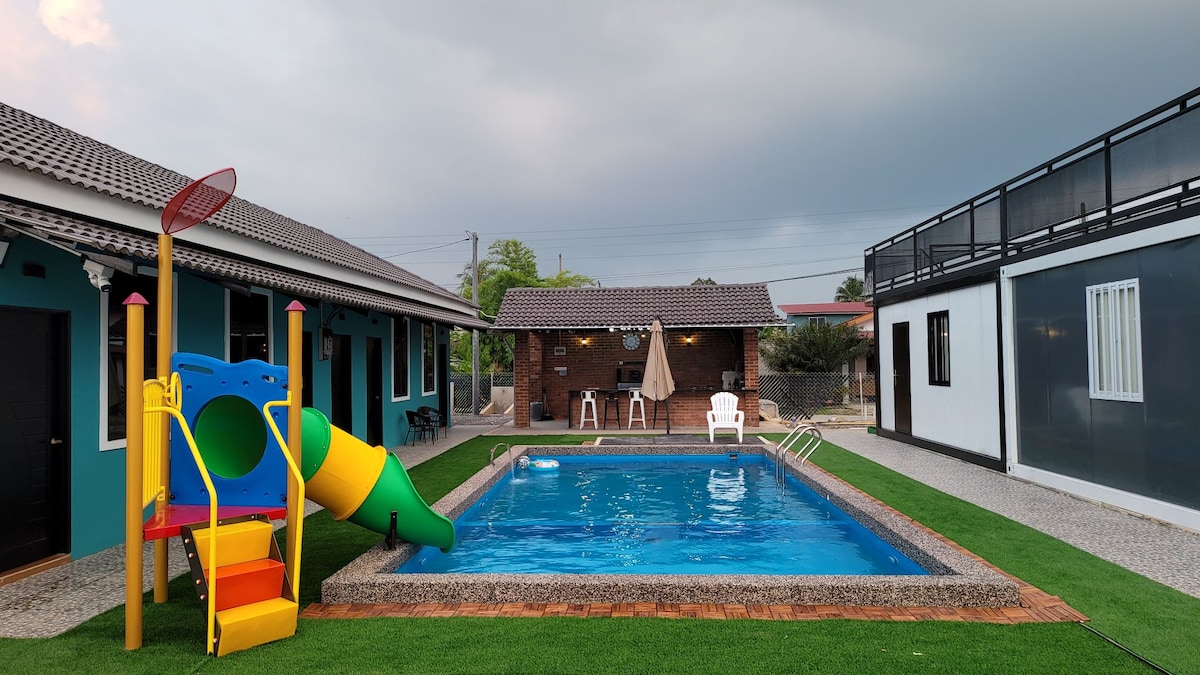 Atsivežkite visą šeimą į šį jaukų,kompaktišką , patogų, bet pilną būstą, kad galėtumėte smagiai praleisti laiką. Panoraminis vaizdas iš paukščio skrydžio į Alor Setar miestą su vaizdu į nuostabų saulėlydį tiesiai iš balkono, nes mūsų būstas yra aukščiausiame lygyje! Baseinas laikinai uždarytas iki 2025 m. gruodžio 18 d. Šeimai tinkamas būstas su visais virtuvės reikmenimis , priekine skalbimo mašina ir vidaus BBQ/garlaivių rinkiniu. Įsikūręs maisto pristatymo intervale ir el. pašto aprėptyje.