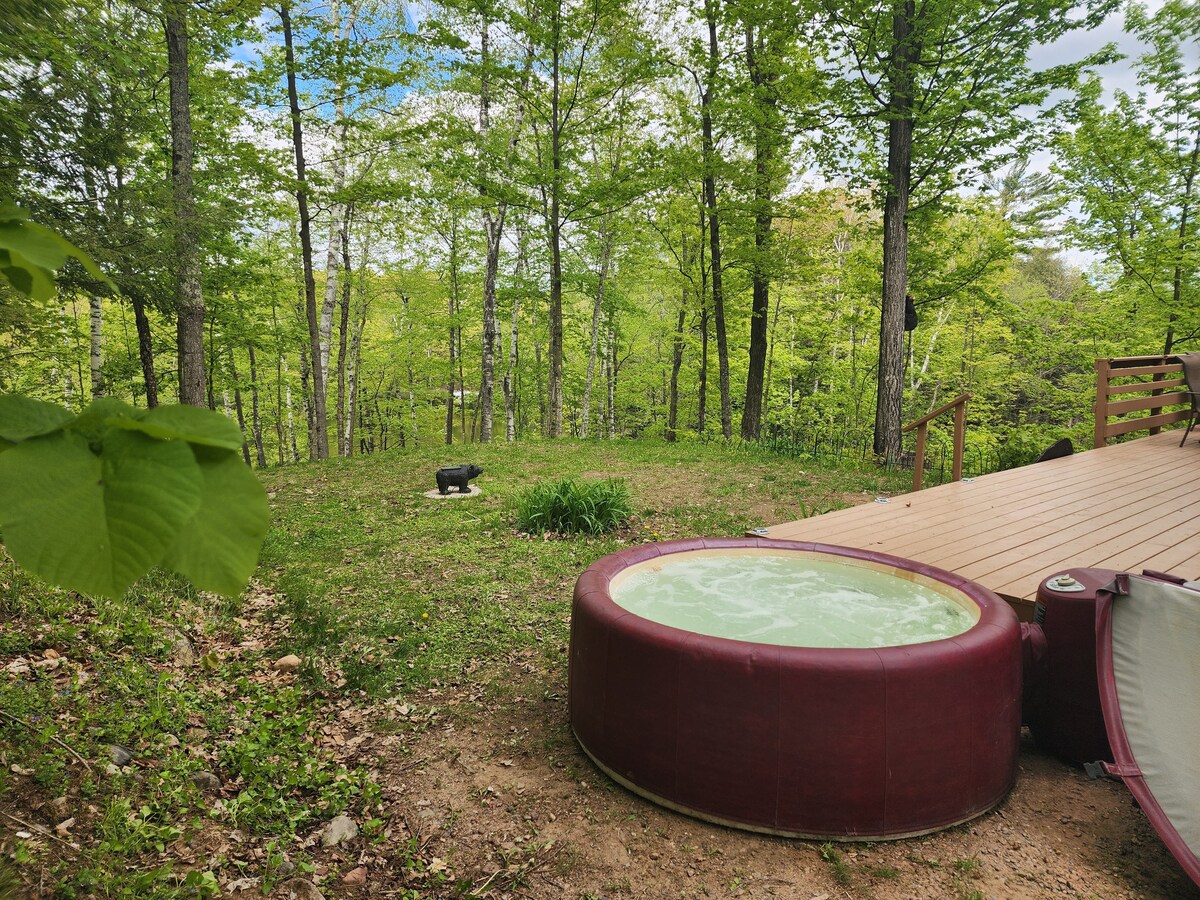 Genuine log cabin with all the comforts needed for a relaxing getaway to nature. Privacy, room to roam. Huge firepit area with abundant seating. Good fishing. Spectacular fall foliage. Winter-direct access to snowmobile trails or stay cozy indoors in front of the fireplace. There are a few taxidermy species mounted on walls. Board games. Three TVs. Dish Network and Internet. Not a good swimming lake but other lakes for swimming and boating within 5-10 minutes away.