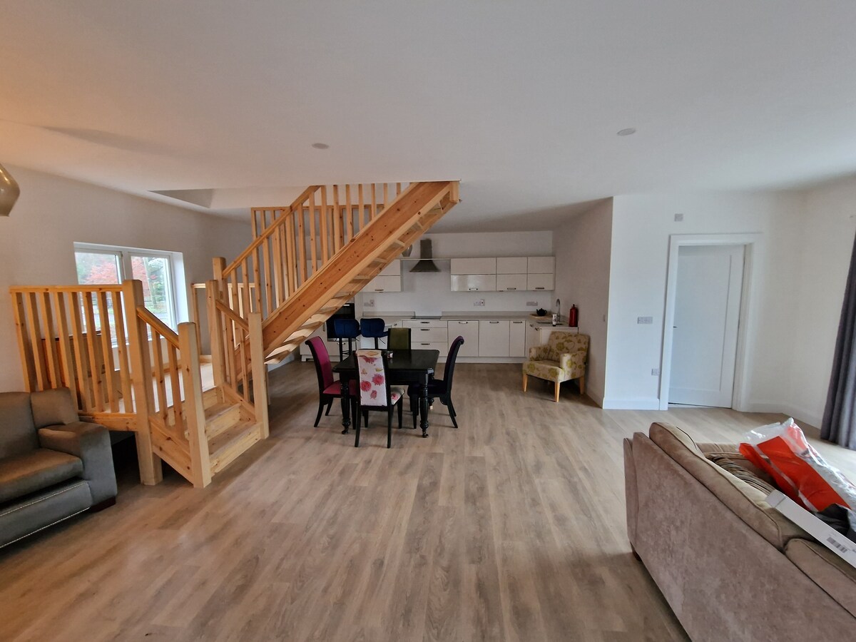 Mėgaukitės stilingu potyriu šiame centre esančiame bute pagrindinėje gatvėje, Abbeyleix. Butas yra uždaroje bendruomenėje - nemokama automobilių stovėjimo aikštelė gatvėje. Butas buvo pastatytas kilimų gamykloje, kuri dengia kilimus titaniniam laivui. Jame yra atskiras įėjimas su laiptais, vedančiais į gyvenamąją vietą, virtuvę ir miegamąjį. Jis dekoruotas šiuolaikiniu stiliumi. Jis skirtas 2 asmenims, bet sofa-lova gyvenamojoje/ virtuvėje gali miegoti 2 pastaba 1 vonios kambarys, į kurį galima patekti tik per miegamąjį.