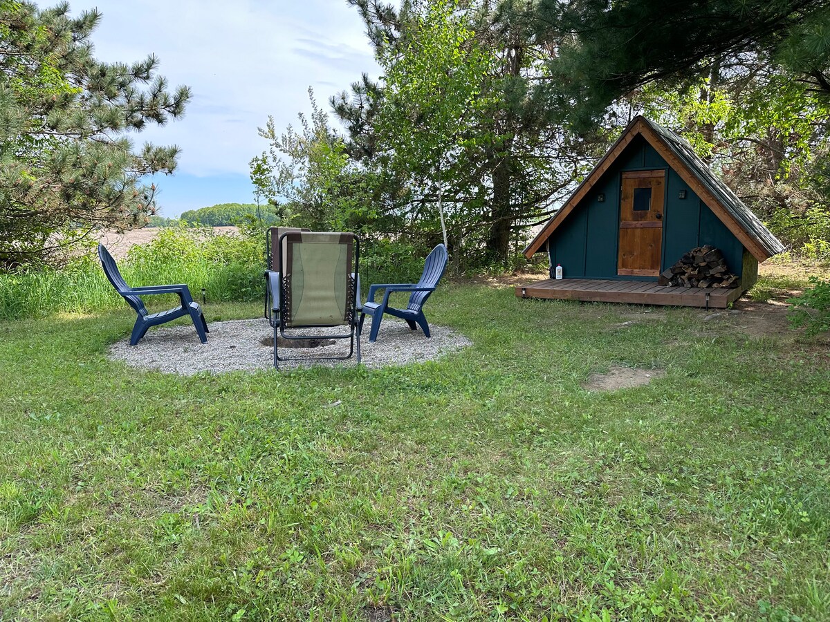 Get away from it all when you stay under the stars with a twist from the farm. Private glamping off grid cabin with peaceful landscapes to enjoy nature in your own secluded A-frame. There’s an outhouse just a short walk from the cabin. Hobby farm by main house with friendly farm animals who love to receive pets! With a blackstone grill and queen bed you can make a cuisine of your dreams and have a few dreams under the stars.