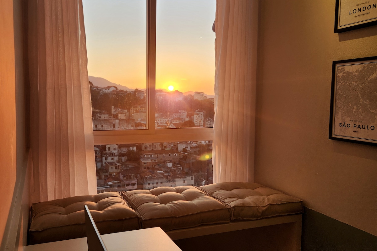 Bem-vindo ao Santa Apartment, um espaço agradável, no coração do Rio de Janeiro no charmoso, calmo e estiloso bairro de Santa Teresa. Aprecie a vista para a cidade e o Cristo Redentor. Venha passear no famoso bondinho e conhecer esse lindo bairro. Se optar pode caminhar até o Parque Glória Maria (Parque das Ruínas), ao centro gastronômico no Largo dos Guimaraes e a Lapa. Você conta ainda com ônibus na porta, bonde, taxi e uber.