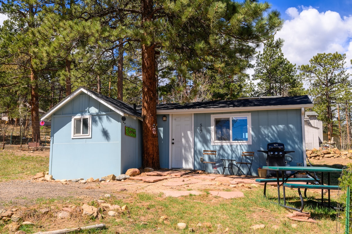 “My wife and I eloped on the deck because it was so beautiful. This place is that much of a vibe.” — Justin Mellow Yellow sits on a quiet hilltop in downtown Estes Park, Permit 3516. Walk everywhere & come home to trees, views, and calm. Sip coffee on the deck, watch the mountains glow, and hear hummingbirds drift past. Treetop deck with views Piano, guitar & drums Full kitchen, 1-gig WiFi 5-min drive to RMNP A small (414 sq ft), creative hideaway built for location, atmosphere, and moments.