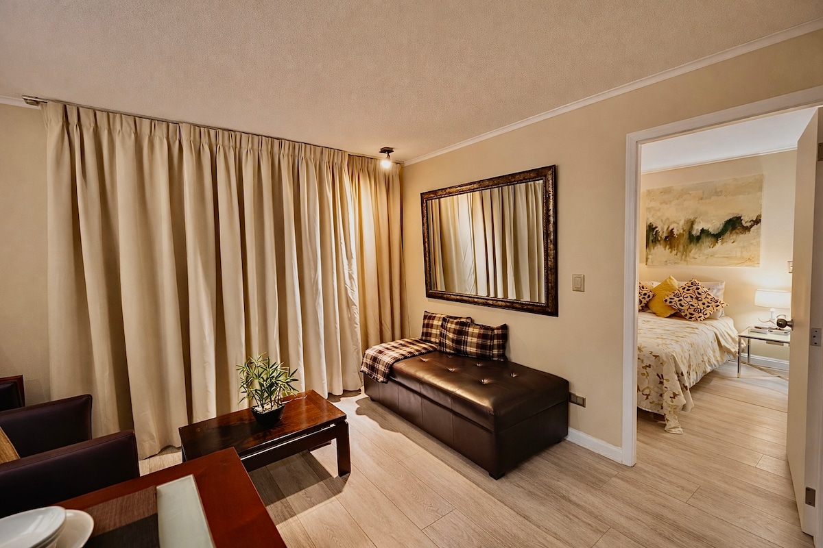 Šiuolaikiškas ir naujas butas,esantis Naujajame Kenedžio pastate,kuriame yra viskas, ko reikia ramiai ir maloniai viešnagei. Esame už 500 metrų nuo prekybos centro „Arauco Park“, už 100 metrų nuo Araucano parko ir už 2 tūkst. metrų nuo Vokietijos klinikos. Tarp kiekvieno atvykimo ir išvykimo jį dezinfekuoja mašina, kurioje įrengta vokiečių technologija. NK pastate yra didelis vidutinio klimato baseinas, lauko baseinas,sauna,sporto salė, 4 susitikimų kambariai, 3 renginių kambariai, dviračiai, sodai.