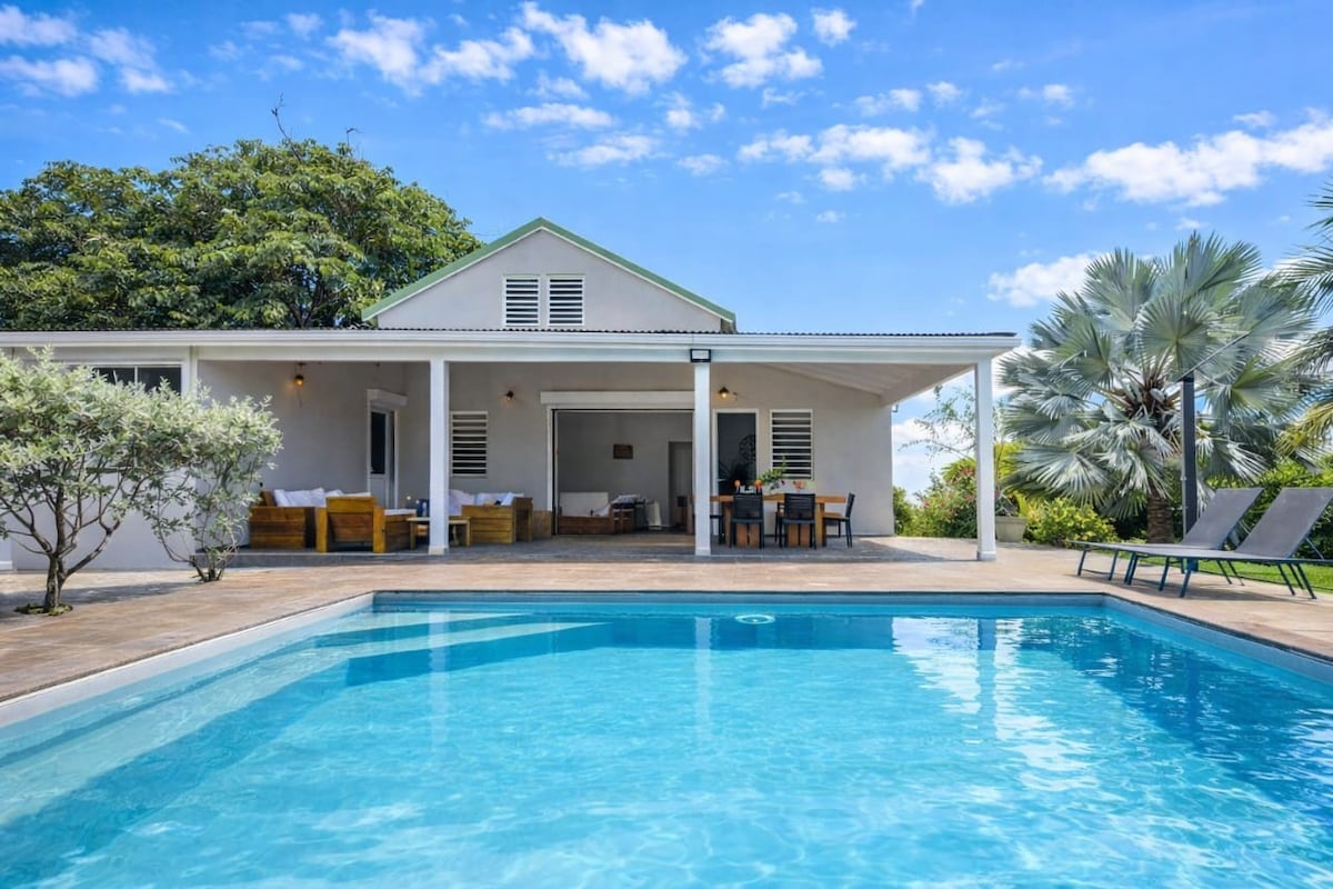 Bathed in light and naturally ventilated, our Creole villa is nestled in a quiet residential area. 10mn walk from Anse Vinaigri beach, close to the Saint-Félix coastal trail. Down the street, within walking distance, you can enjoy freshly baked baguettes pain au chocolat every morning. For your daily dose of tropical flavors, a local fruit/vegetable shop is also nearby. Our pool is open-air, occasionally, the Caribbean breeze might drop a few bougainvillea flowers onto the water's surface.