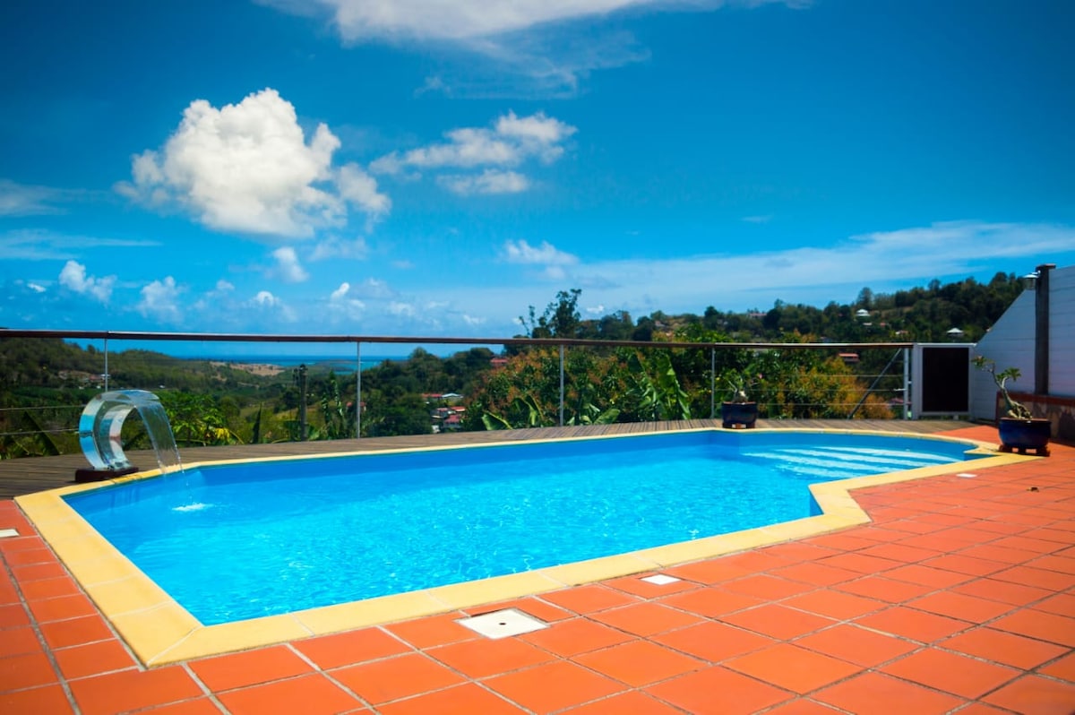 Nauja architekto vila, modernus šiuolaikinis stilius, organizuojamas 2 lygiais: - 1 aukštas: 45 m2 apgyvendinimas - Pirmas aukštas: 35 m2 privati ir oro kondicionieriaus sporto salė Vila yra erdvioje žaliojoje 1000 kv. m plote, šviežia ir vėdinama, ramioje ir nepamirštamoje vietoje Apgyvendinimą, esantį pačioje kaimo širdyje, supa vaismedžiai (mango medžiai, apelsinų medžiai, mandarinų medžiai, citrinmedžiai, avokadų medžiai, kokoso medžiai ir kt.). Iš jo atsiveria nuostabus vaizdas į jūrą į Sent Lusiją, šildomą baseiną