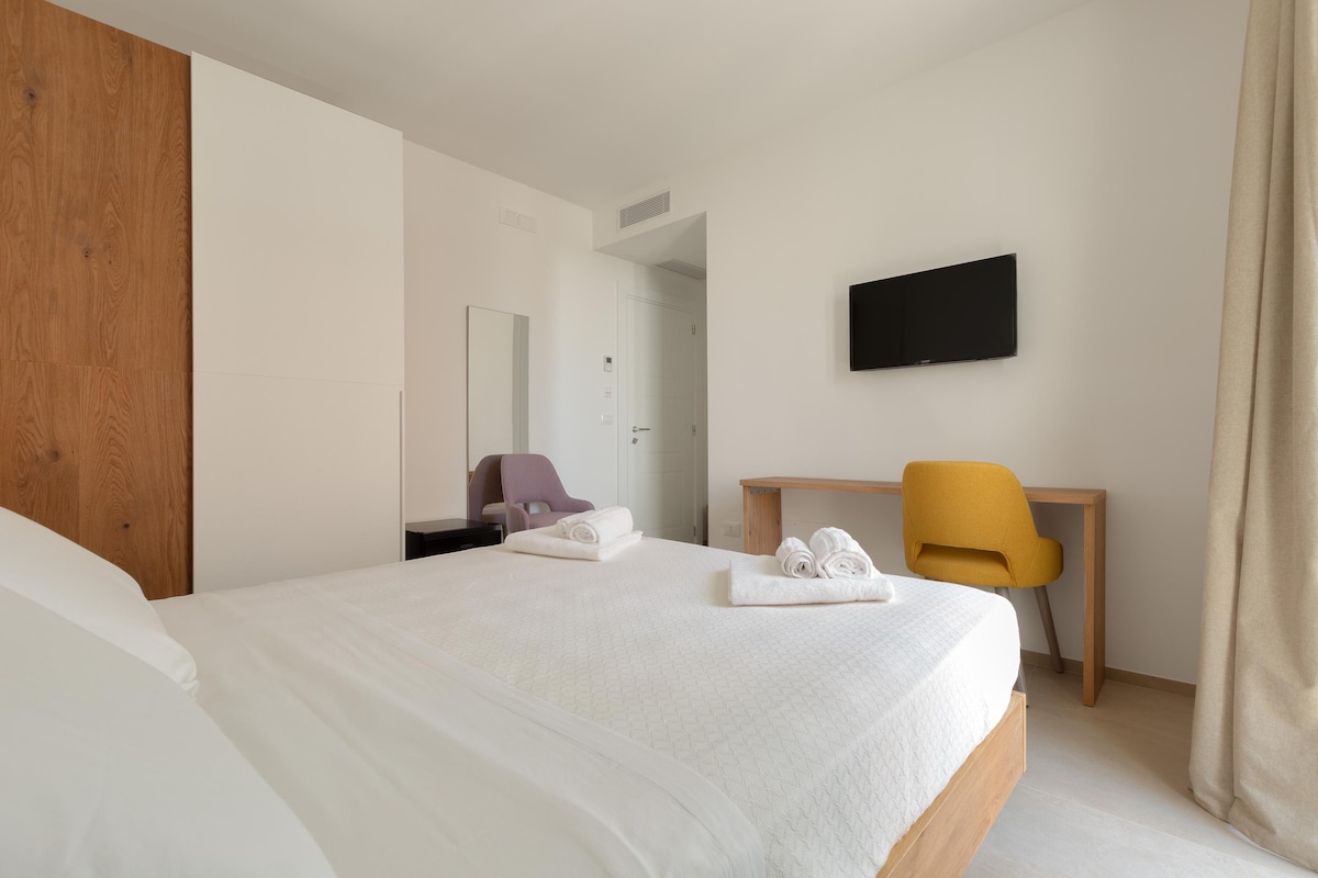 Kambarys su sodu, privačiu vonios kambariu ir žavingu dušu, kuriame jaučiamas prisilietimas yra sustiprintas. Įsikūręs išskirtinėje Lečės rezidencijoje centre, įsikūrusi pačioje San Lazzaro rajono širdyje, žaliose miesto plaučiuose, netoli istorinio centro, naktinio gyvenimo ir apsipirkimo širdyje. Kambaryje yra oro kondicionierius, televizorius, mini baras, virdulys, plaukų džiovintuvas, belaidis internetas. Įskaičiuoti pusryčiai (taip pat be glitimo). Nemokama lauko automobilio stovėjimo aikštelė.