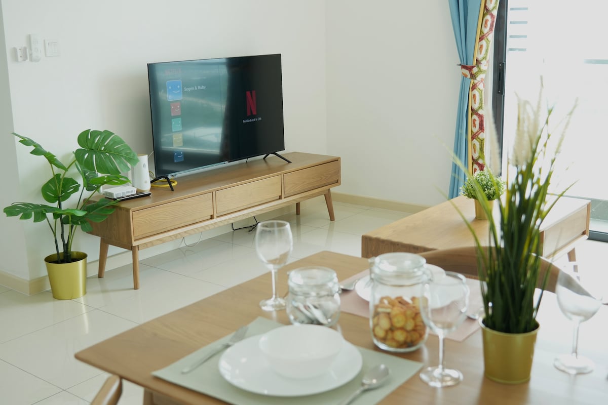 ★Sogen ir Ruby įvertinta ★★★★★žvaigždute ★Dviejų miegamųjų didelis butas 900 kv. pėdų pastate, 8 lovos ★Didelės spartos internetas (neribotas naudojimas) ★ Netflix ★Apsaugos prieigos kortelė, 24 valandas saugo sargybiniai ★Baseinas, sporto salė, vaikų žaidimų aikštelė. ★Maisto prekių parduotuvė pirmame aukšte.