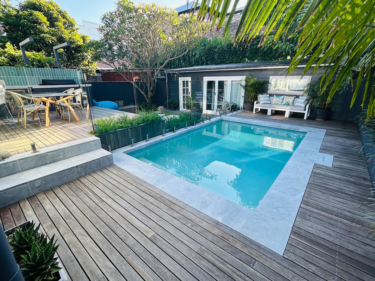 Our boutique garden cottage offers a queen bedroom, separate lounge, kitch, bathroom/laundry. Blow up mattress for extra guests. Located Inner West - Leichhardt, with access to thé light rail a 4 min walk and 15 min ride to Darling Harbour. Central Station is 20 mins away. Guests are welcome to use the swimming pool and BBQ area at own risk. Leichhardt, on the flight path, offers a wonderful experience with restaurants, bars and cafes a 10 min walk to the vibrant Norton St.