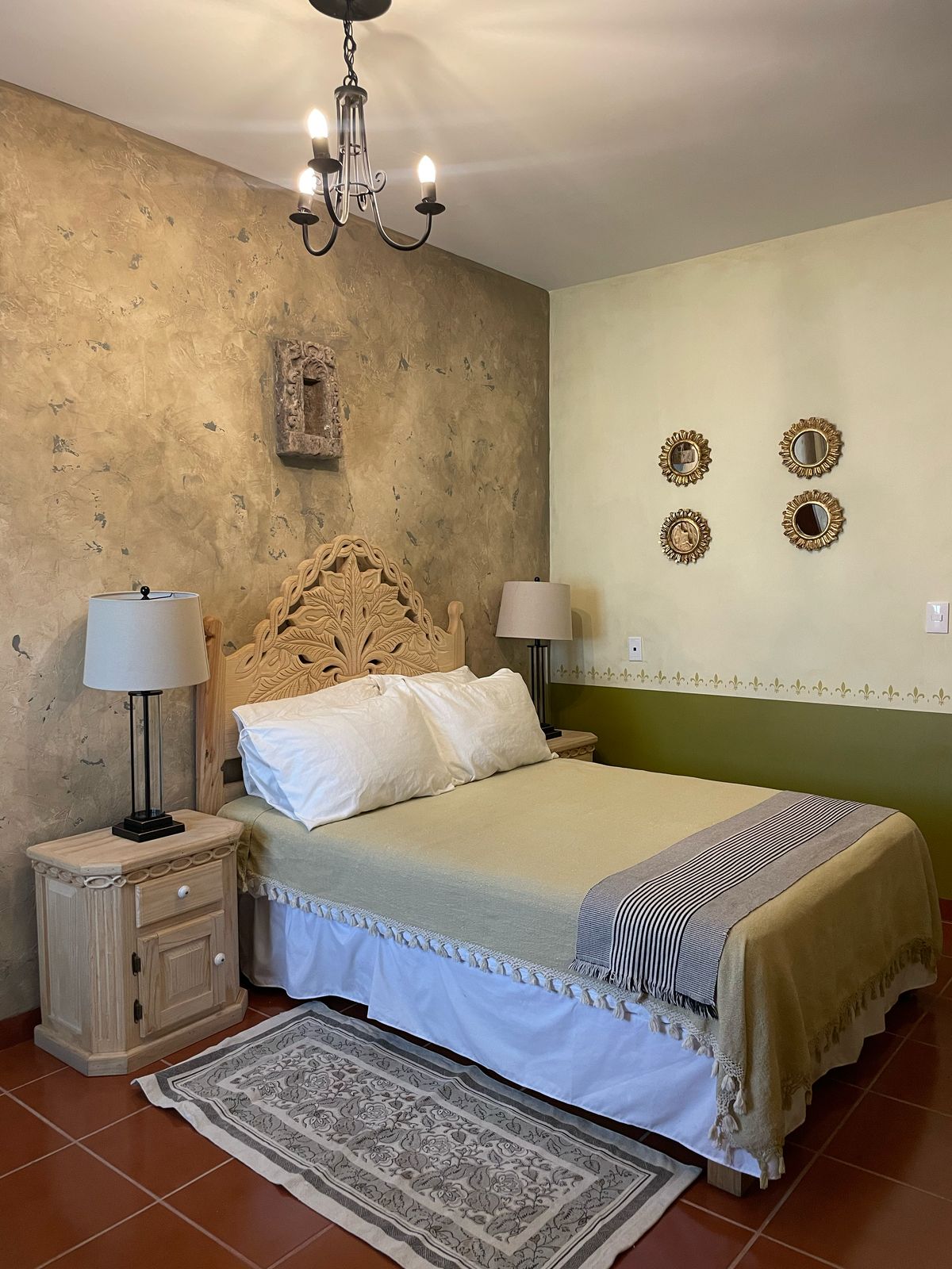 Habitación básica con cama matrimonial para huéspedes en lugar seguro, cerrado, con acceso a internet de alta velocidad. Estacionamiento dentro de la propiedad. Nos encontramos a 10 minutos del aeropuerto internacional del bajío a las afueras de la ciudad de Léon.
