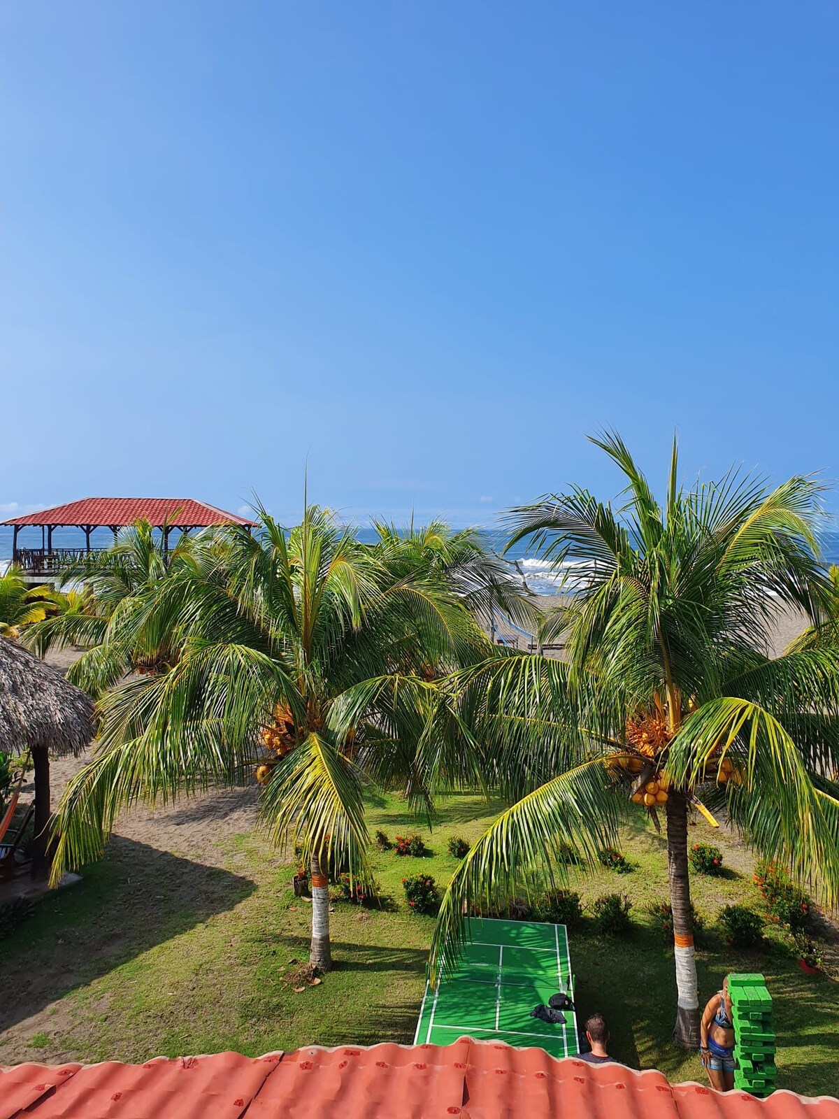 Under a grove of palms, this chill beach house is a little rustic—sun-worn, slightly rough around the edges, but comfy and full of charm. Cool off in the small infinity pool just steps from the bedrooms, and enjoy partial ocean views through the palms and dunes while the waves do the talking. Bedrooms are large, each with A/C and a private bath. No traffic, no fast food, no paved roads—just a mellow weekend base. Kick back with friends after surf sessions and let the sea breeze reset you Always