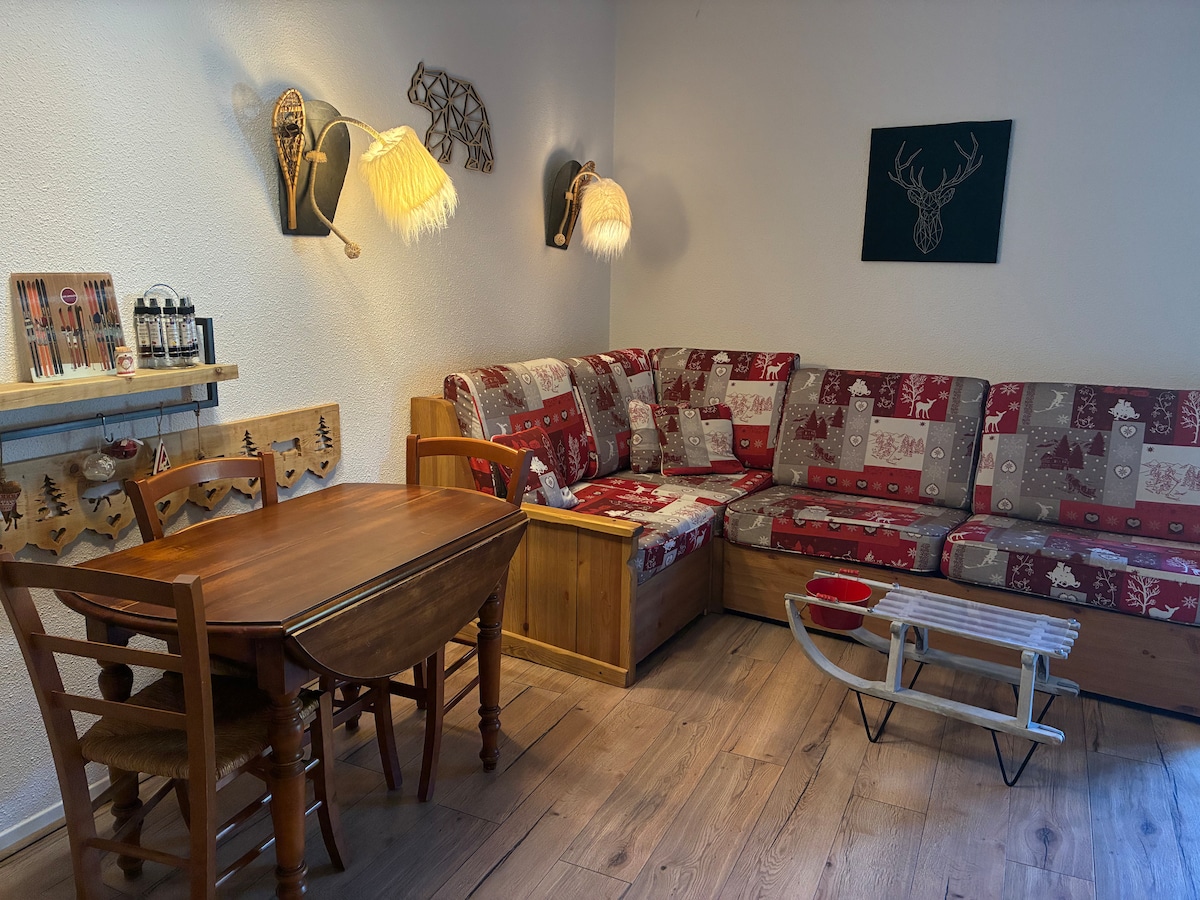 -APPART. 3*** visiškai renovuota sena mediena -45 m2 + neribotas ŠVIESOLAIDINIS WI-FI -2e et.+supper -calme: 2 balkonai ir nuostabūs panoraminiai vaizdai. - idealiai tinka šeimoms+2 vaikams ir 1 Bb -+informacija „NAMUOSE“ -1 miegamasis (LITx160) +2 SULANKSTOMOS lovos (x80) prie įėjimo. Visa patalynė yra NAUJA ir kokybiška -draps +rankšluosčiai tiekiami NUO 4 naktų -SDB (vonia+tualetas) - privatus slidininkas nusileidimo aikštelėje - Nemokama privati neuždengta automobilių stovėjimo aikštelė -commerces/village 5 min. pėsčiomis/2 min. nemokami maršrutiniai autobusai sezono metu 7 dienas per savaitę
