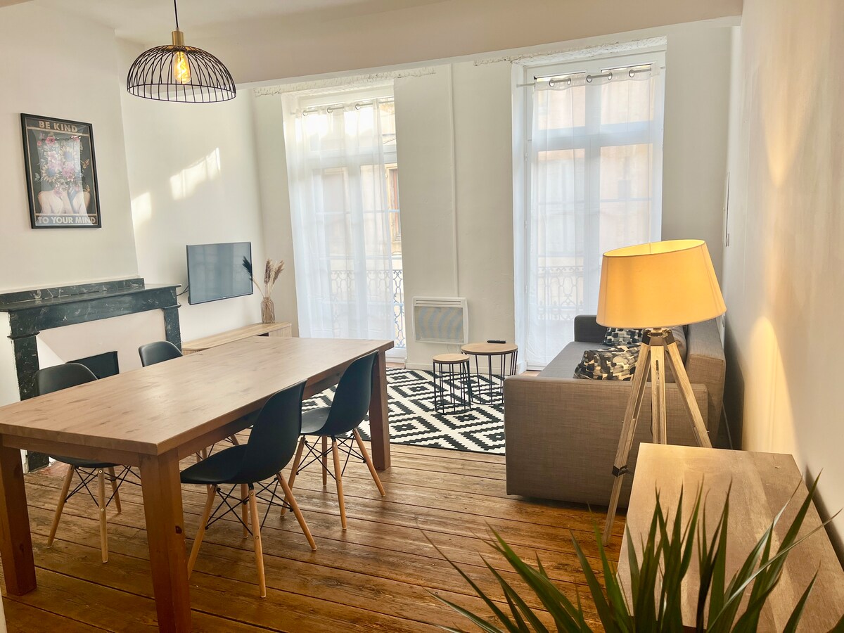 XIX a. pabaigos 35 m2 namas Oksitano rūmuose. Jis yra pirmame aukšte ir viršutiniame aukšte mažo saugaus pastato (vigik ženklelis + vidinis ryšys) aukšte. Nemokama automobilių stovėjimo aikštelė viešojoje nuosavybėje su vaizdo apsauga, matoma iš buto. Visos parduotuvės pasiekiamos pėsčiomis. Oro kondicionierius ir šilumos siurblio šildymas grįžtamas oras/oras