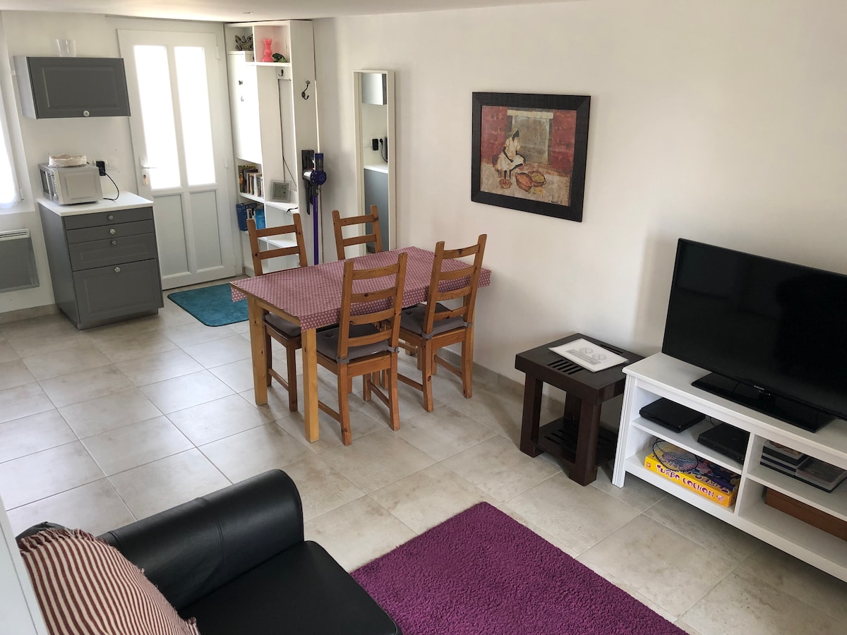 Visiškai nepriklausoma 20 kv. m vieno aukšto studija, įskaitant: - 1 įrengta virtuvė (1 šaldytuvas, 1 mikrobangų krosnelė, 1 Senseo kavos aparatas, 1 keraminė viryklė...) - 1 dvigulė lova - 1 vonios kambarys + WC - Wi-Fi - TV ekranas su Chromecast. Rami ir maloni kaimynystė. Visos parduotuvės yra netoli pėsčiomis. Idealiai tinka turistinei viešnagei netoli Paryžiaus. Tinka verslo viešnagėms. Artimumas CEA Bruyères-Le-Châtel (3 min. autobusu/10 min. pėsčiomis). Netoli RER C stoties autobusų linijos.