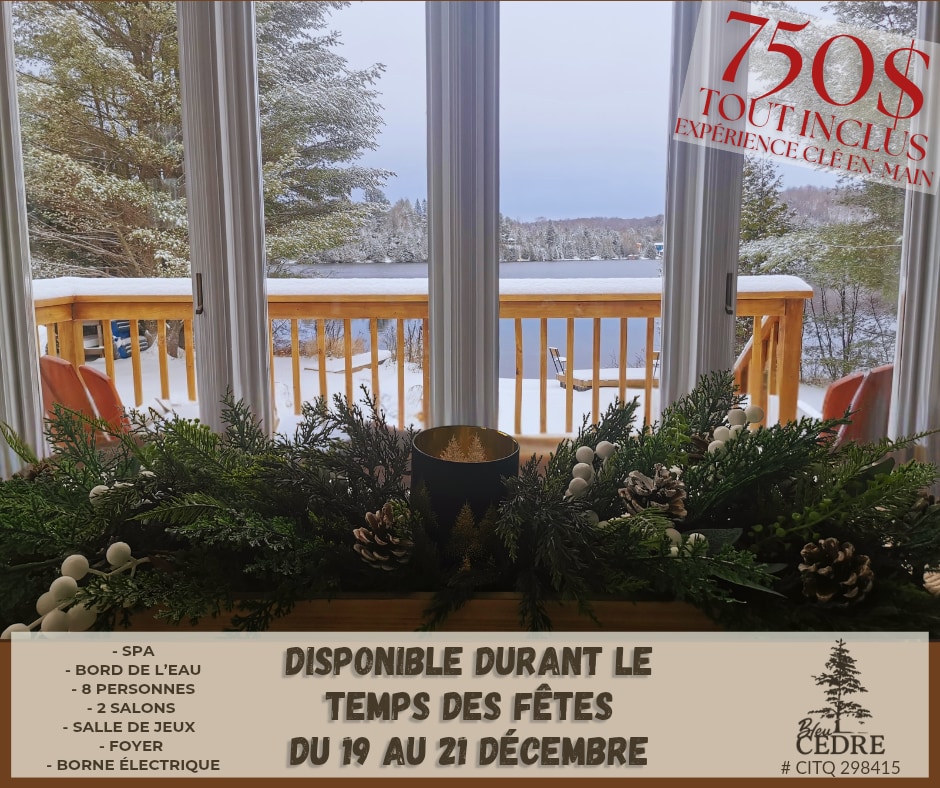 Jauki rąstinė trobelė Val-des-Lacs (Tremblant) su gražiu atviru akmeniniu židiniu 2 akrų ežero pusėje. Netoli slidinėjimo kalvų, 23 km nuo Mont Garceau ir La rezervato ir 35 km nuo Tremblant. Du kambariai su dvigulėmis lovomis ,vienas bendras vonios kambarys su vonia/dušu, o kitame - atskiras kambarys su dušu. Mezoninas su dviem dvigulėmis lovomis ir skaitymo zona, todėl iš viso jame patogiai miega 8 žmonės.