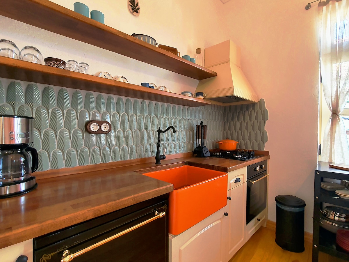 1 + 1 guest house in Ayvalık Mutlu Village. Stone building with separate entrance adjacent to the main building. Ayvalık is 5.8km from the bus stop, 7.5 km from the city center, 20 km from the Sarmısaklı beach, 30 km from Kozak Plateau and 37 km from Edremit Koca Seyit Airport. It has its own toilet, bathroom and kitchen. We have 40 Mbps wifi. A calm and peaceful environment.