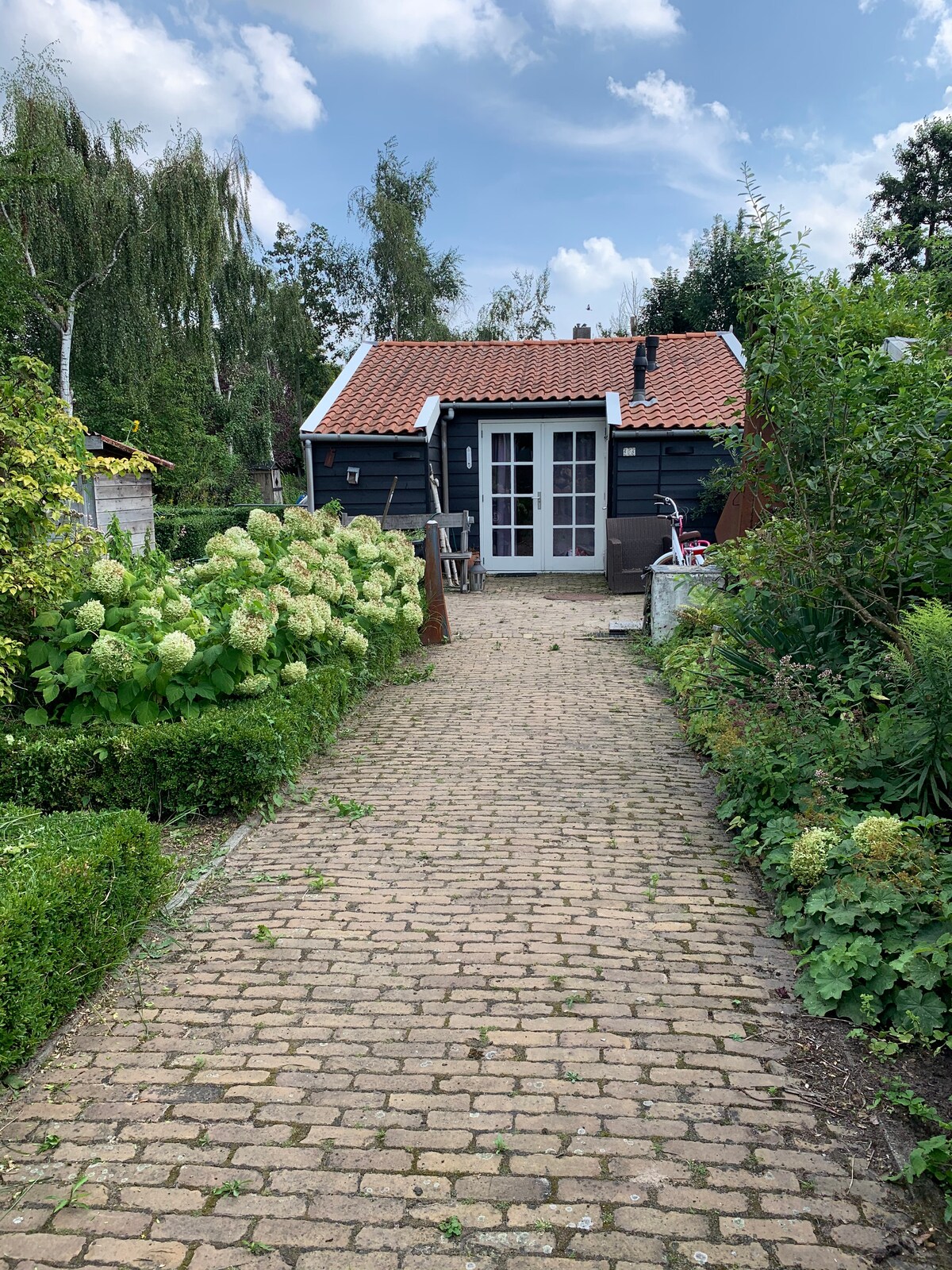 Mėgaukitės viešnage šiuose naujuose (24) gražiuose privačiuose svečių namuose (45 m2) su saulėta terasa. Įsikūręs mūsų kieme, už jo yra atskiras įėjimas per kelią. Tylu, bet centre, netoli oro uosto ir netoli A 'dam. * 2-4 svečiai * Visiškas privatumas (raktų dėžutė) * Saulėta terasa * Oro kondicionavimas * 4 nemokami dviračiai * Nemokamas automobilio statymas * Amsterdamo CS: 50 min. viešuoju transportu (15 km) * Oro uostas: 15 min. (6 km) * Zandvorto paplūdimys: 30 min. (22 km) * Aalsmeer prekybos centrai/restoranai: 10 min. pėsčiomis