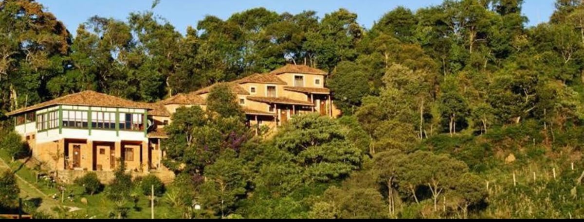 Nepriklausomi poilsio nameliai Atlanto miško viduryje su pilnais pusryčiais, iš kurių atsiveria geriausias vaizdas į Ibitipoca! Taip pat mėgaukitės mūsų vonios kambariu su sauna ir sūkurine vonia, 1 val. 30 min. per dieną viešnagės metu. Mes taip pat turime žaidimų kambarį su baseinu, totemu ir terasos stalu visam laisvalaikiui.