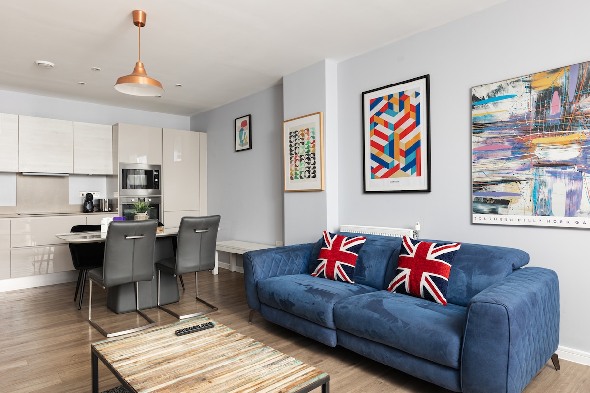 Wake up to panoramic Thames and City skyline views in this luxury two-bedroom, two-bathroom riverside apartment in Limehouse, Canary Wharf. This stylish London serviced apartment offers a bright open-plan living space, modern kitchen, fast WiFi and premium comfort throughout. Peaceful waterfront setting with cafés and pubs nearby, plus excellent transport via Docklands Light Railway, Elizabeth Line and Underground—ideal for business or leisure stays.