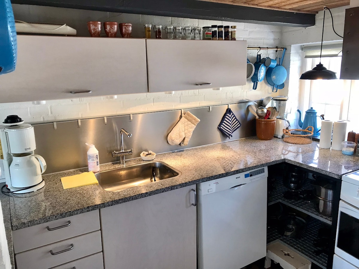 Namas yra Mårup, Nordøen, netoli uosto ir Nordby kalvų. Tiesia linija tarp abiejų paplūdimių yra 900 m. Namas erdvus, aukštomis lubomis ir su daugybe jaukių kampelių. Nuostabi kalvota gamta yra būdinga Nordøen, ji prasideda tiesiai už durų. Nordøen turi parduotuves, restoranus ir specializuotas parduotuves. Mes turime specializuotą parduotuvę HØST ir vyno bei kavos barą. Galerijoje eksponuojami Pernilės darbai, o Jokūbo darbai yra kavinėje. Įskaičiuota patalynė, rankšluostis ir vonios rankšluostis vienam asmeniui