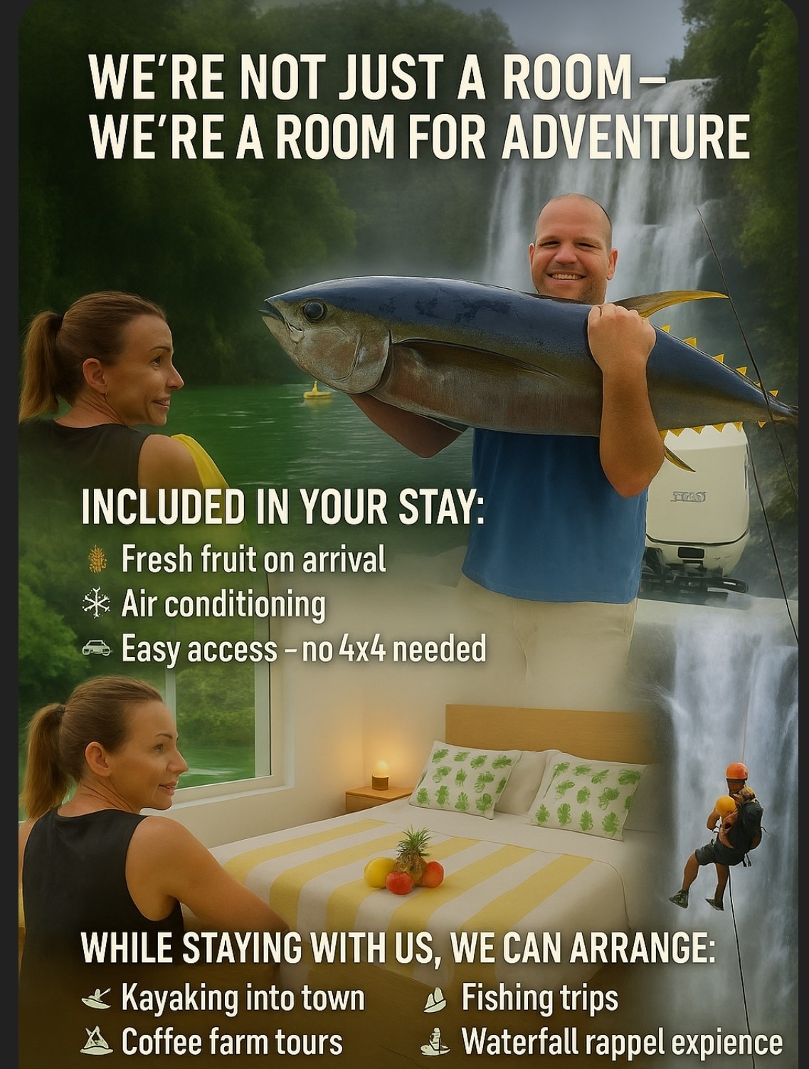 Fresh, clean, air conditioned room for 2, WiFi