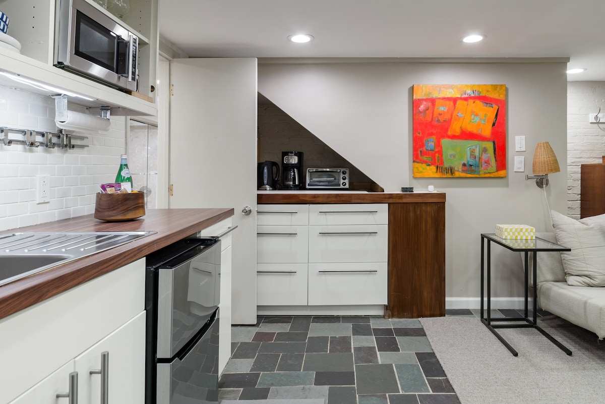 Sveiki atvykę į Kapitolijaus kalvą! Ši graži Anglijos rūsio studija yra puiki vieta vadinti namus tyrinėjant Kolumbijos apygardą. Per 1,5 mylios pėsčiomis galite pasiekti Sąjungos stotį, Rytų turgų, 3 metro stoteles, Marine Barracks/Barracks Row, JAV Kapitolijų, Aukščiausiąjį Teismą, Kongreso biblioteką, Linkolno parką ir kitas puikias vietas pavalgyti (įskaitant „Michelin“ žvaigždute įvertintus restoranus). Šiame vaikams tinkamame bute yra visa virtuvė, skalbykla, neseniai renovuotas vonios kambarys ir daug patogumų.
