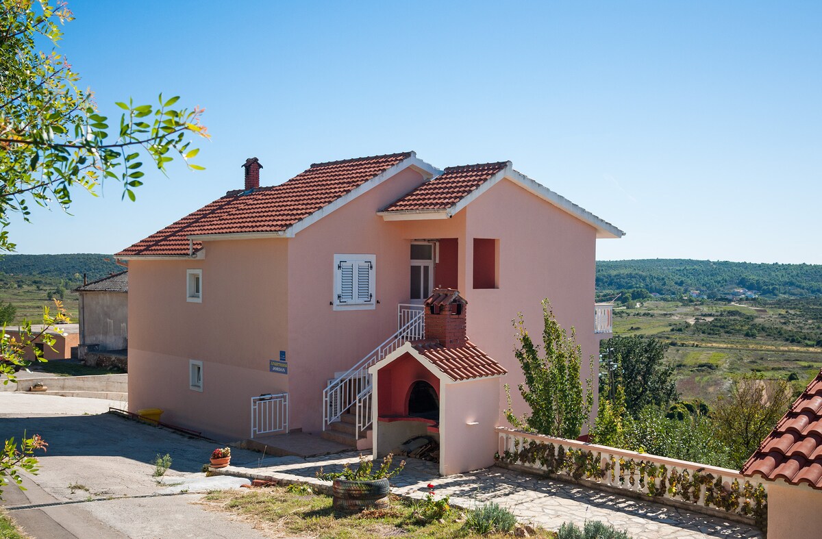 Naujas renovuotas namas Podvršje, už 18 km nuo Zadaro miesto. Už 2 km nuo gražaus smėlio paplūdimio Ljubače. Namelyje yra trys apartamentai, du - 6 asmenims ir vienas - 3 asmenims. Apartamentuose JORDAN 2 (2+1) yra vienas miegamasis su dvigule lova ir sofa-lova, vonios kambarys su dušu, virtuve ir terasa. Priešais namą yra naujai pastatytas baseinas.