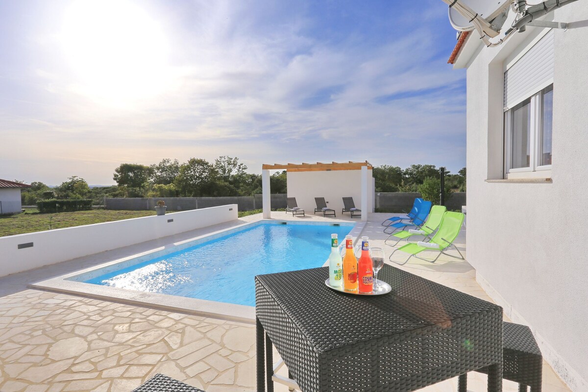 Visas namas su baseinu Poljicoje, netoli gražių Zadaro ir Nino miestų. Trys miegamieji ir du vonios kambariai. Ramus ir tylus, atokiau nuo eismo ir miesto triukšmo. Netoliese esančių paplūdimių įvairovė yra pasiekiama per 7-20 minučių automobiliu. Vos už valandos kelio yra nacionaliniai parkai su visu grožiu. Arba galite tiesiog pailsėti prie baseino.