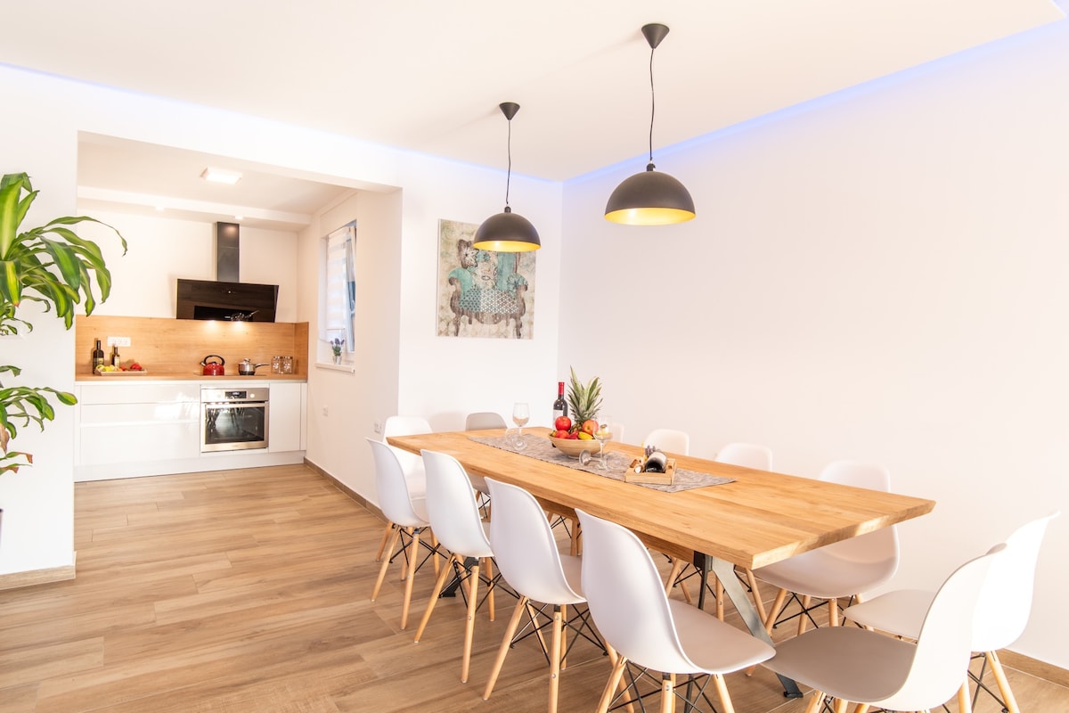 Pabėkite į mūsų išskirtinę vilą žavingame Loborikos kaime, įsikūrusiame vaizdinguose Istrijos pietuose netoli Pulos. Su erdviu privačiu sodu ir kruopščiai suprojektuotu interjeru pasinerkite į gaivinančius privataus 36 kv. m baseino vandenis arba atsipalaiduokite didelėje dengtoje terasoje. Interjere yra oro kondicionierius. Kepkite ant anglinių kepsninių ir atsipalaiduokite ant soliariumų.