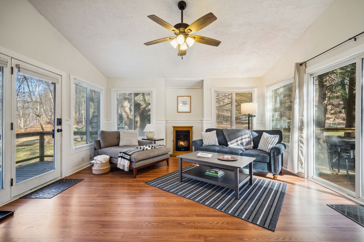 Sleep 16 with deck, sauna, hot tub, huge sun room