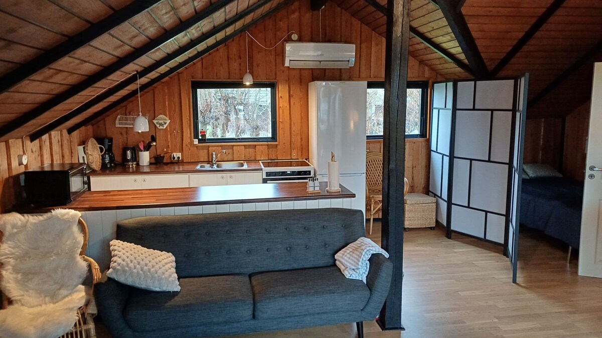Jaukus svečių namas vaizdingoje aplinkoje prie nedidelio ežero, toliau nuo pagrindinių kelių ir miesto šurmulio. Svečių namas yra mano pagrindinės nuosavybės dalis, todėl visada galiu padėti iškilus bet kokiems klausimams ar problemoms. Jame yra šildomos grindys, privatus vonios kambarys su dušu ir pilnai įrengta virtuvė su viskuo, ko reikia maisto ruošimui. Namo teritorijoje gyvena malonus haskių šuo.