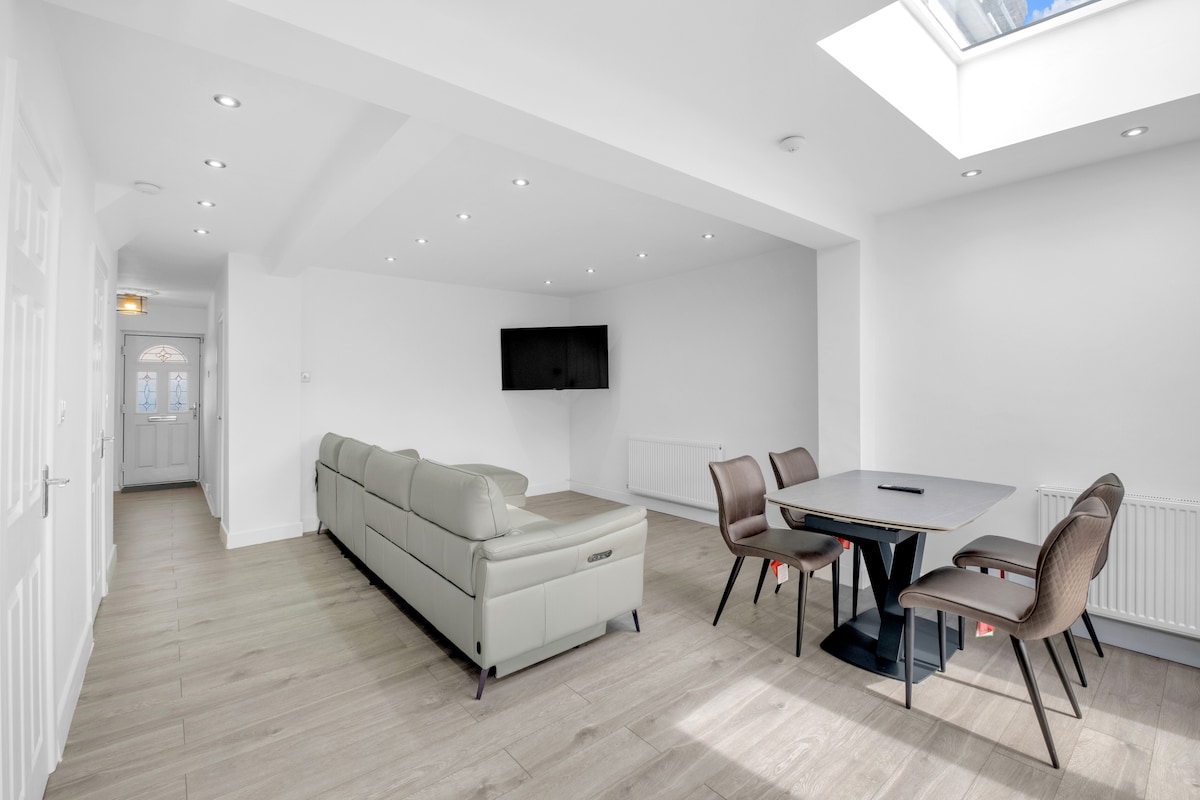 Sveiki atvykę į šį nepriekaištingą 3 miegamųjų namą Dagenhame, kuriame siūlomas puikus komforto ir šiuolaikiško gyvenimo derinys. ✨ Pagrindinės funkcijos: • 3 gerai įrengti miegamieji • 2 modernius vonios kambarius • Atviro plano gyvenimo koncepcija • Pilnai įrengta virtuvė • Prime East London vietovė (RM8) Patogumai: moderni virtuvė, patogi gyvenamoji erdvė, švari patalynė, išmanusis televizorius, greitas belaidis internetas ir nemokama automobilių stovėjimo aikštelė. Ideali vieta su lengva prieiga prie vietinių patogumų ir transporto jungčių. Jūsų tobuli namai toli nuo namų Rytų Londone