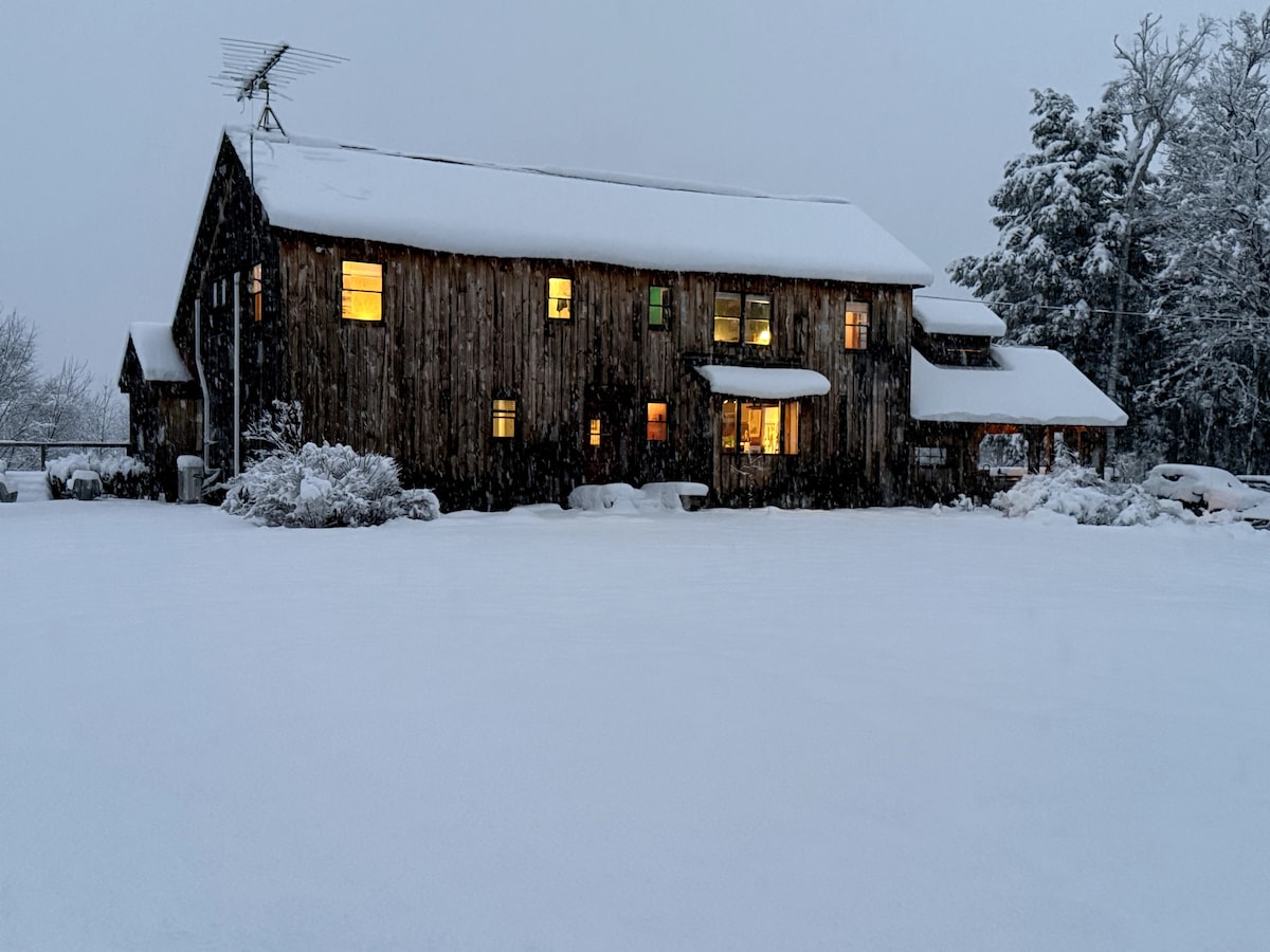 On a cold winter morning Wake up in a luxurious bed in a stylish cabin with panoramic Vermont views. Grab a hot coffee with a book from our library. Hot mug in hand, step out to the porch, look at faraway hills. Make breakfast in the Chefs kitchen. Snowshoe/slide/talk/play with your favorite people/animals in the world. Take a scenic drive to Woodstock, Simon Pearce, Okemo, or the Harpooon Brewery. Kick back with a night around the firepit stargazing Sharing our Red House with you.