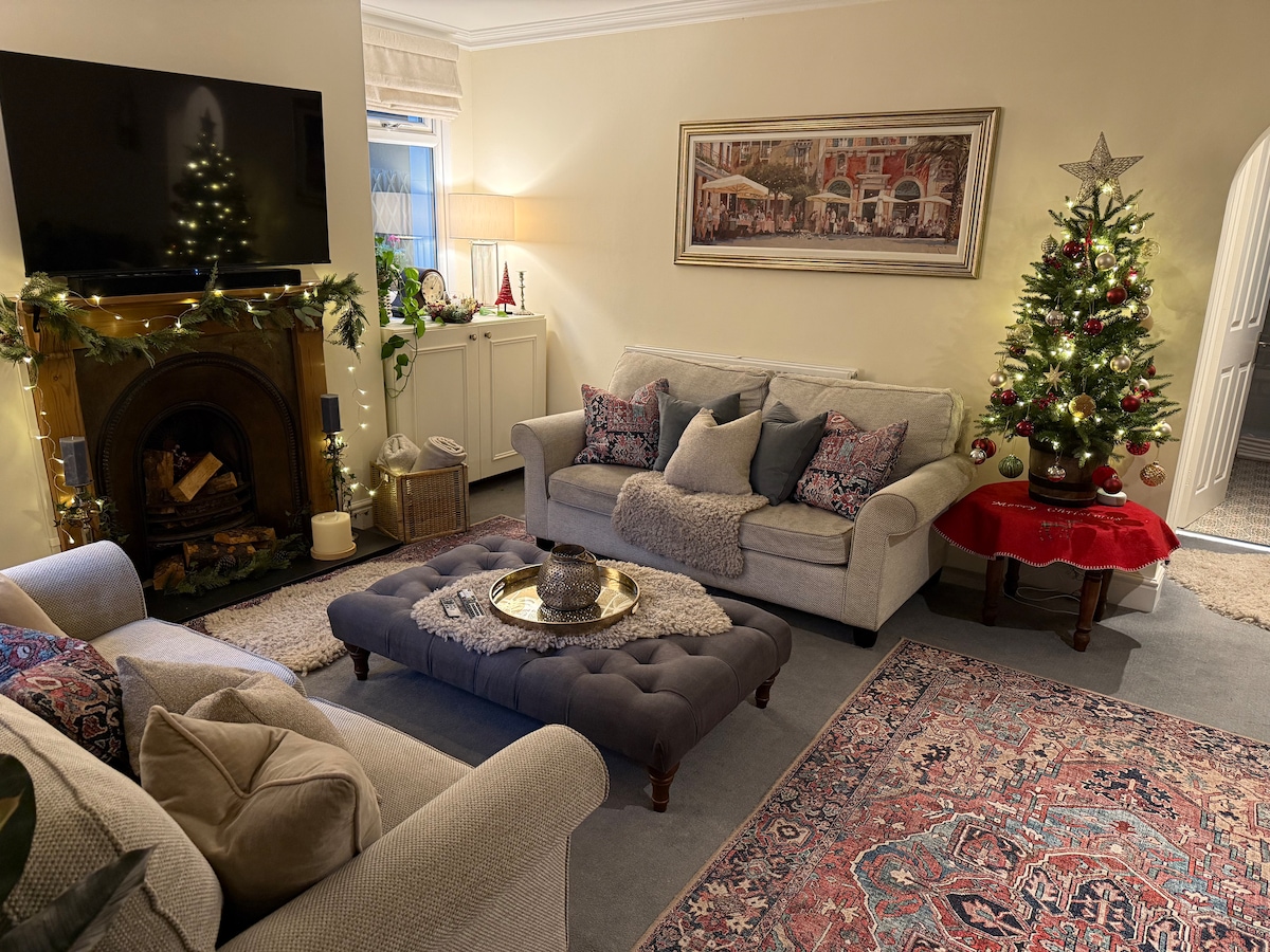 Kambaryje yra atskiros įėjimo durys. Jame yra dvigulė karalienės dydžio lova, dušo kambarys ir virtuvės zona (tiekiama arbata, kava, grūdai ir kt.) su šaldytuvu, mikrobangų krosnele ir viena indukcine virykle. Yra sofa, televizorius ir stalas su dviem kėdėmis. Mūsų namai yra už maždaug 15 minučių kelio pėsčiomis iki Claygate stoties. Traukiniai tiesiai į Londoną Vaterlo (35 min.) ir Guildford. Claygate yra vietinių parduotuvių ir CoOp, keli barai ir restoranai, o mes esame netoli autobusų stotelės, kurioje dažnai kursuoja autobusai į Kingstoną į pagrindines parduotuves.