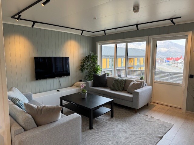 Gražus 76 m viršutinio aukšto butas su moderniais baldais Longyearbyen centre. Yra 3 miegamieji; 1 karališko dydžio lova ir 2 karališko dydžio lovos. VISKAS labai patogu. Miesto centras yra tiesiai virš gatvės su puikiais restoranais/barais ir apsipirkimu. Vaizdas į Hiortfjellet iš svetainės yra įspūdingas, o netoliese yra daug žygių galimybių. Įtraukta televizija su „Netflix“, „Hbo“ ir „Viaplay“. Jei turite klausimų, nedvejodami susisiekite su manimi.