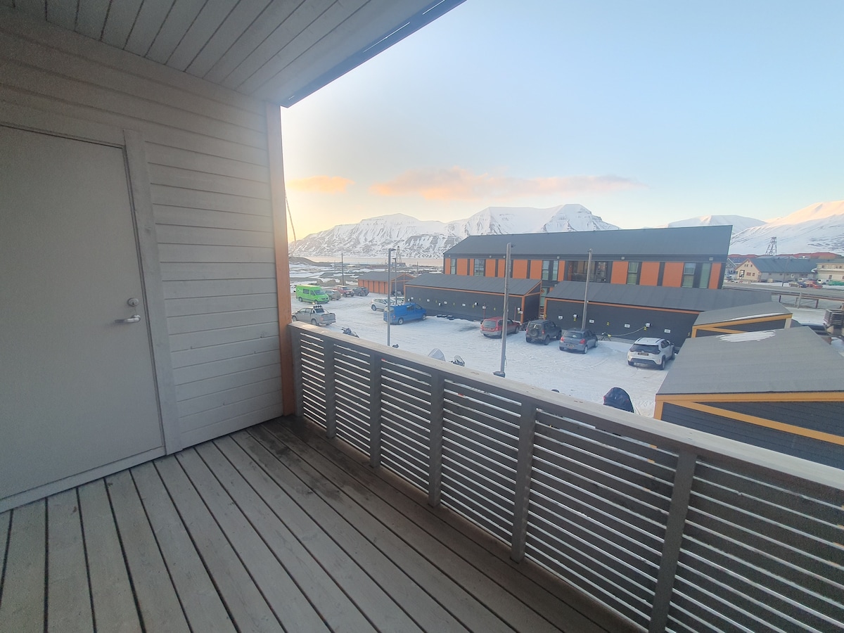 Atraskite vieną geriausių butų vaizdų Beverli Hilse, Longyerbyen. Čia galite patirti unikalų vidurnaktį nuo balandžio vidurio iki rugpjūčio pabaigos. Jei pasiseks, taip pat galite pažvelgti į šiaurines šviesas nuo lapkričio iki vasario. Butas yra vos už 400 metrų nuo didelio aukščio baseino, kur galite pažvelgti į gražias šiaurines šviesas. Atsiveskite savo šeimas ir draugus (iki 4 žmonių), kad galėtumėte mėgautis vaizdu į vandenyną ir kalnus.