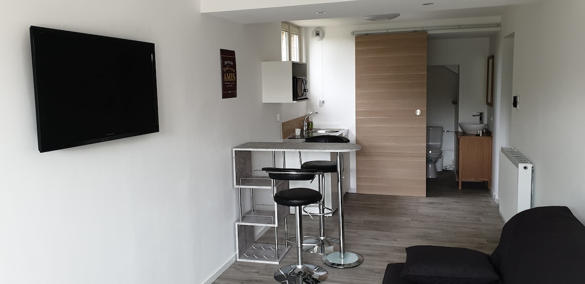 25 m2 apgyvendinimas netoli Ecouves miško ir mažiau nei 10 min. kelio nuo Alensono miesto centro. Studija yra labai gerai įrengta (BZ sofa su labai geru čiužiniu, išmanusis televizorius, lubinis šviestuvas su įmontuotu garsiakalbiu muzikai klausytis, mikrobangų krosnelė, virtuvės viryklė, vonios kambarys su dušu, tualetas, kriauklė ir rankšluosčių džiovintuvas). Galimybė laikyti dviračius ar motociklus pastogėje.