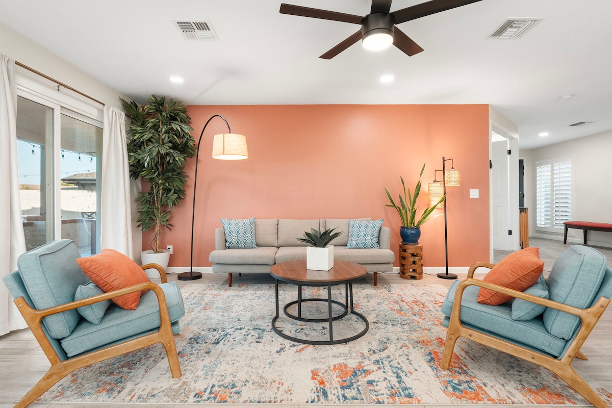 Sveiki atvykę į „Scottsdale Great Escape“ - jūsų erdvų ir saulės apšviestą poilsį. Atviras išplanavimas suteikia daug natūralios šviesos, sukuriančios šiltą ir patrauklią atmosferą. Nesvarbu, ar esate čia, kad dirbtumėte, ar atsipalaiduotumėte, specialioje darbo vietoje galėsite naudotis sparčiu belaidžiu internetu, pilnai įrengta virtuve, nuostabia kiemo terasa su lauko kepsnine ir jauki sofa, kurioje galite atsipalaiduoti ir mėgautis mėgstamiausiomis televizijos laidomis. Papildomam patogumui yra pritvirtintas garažas.
